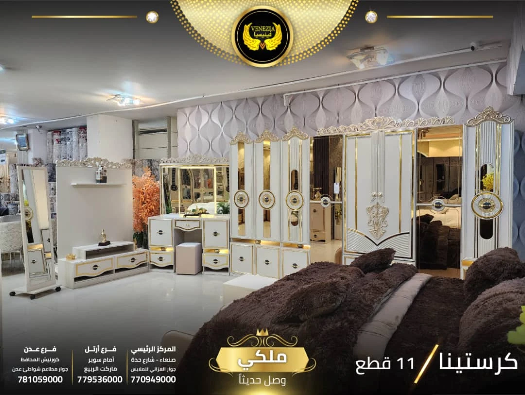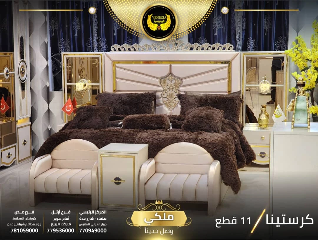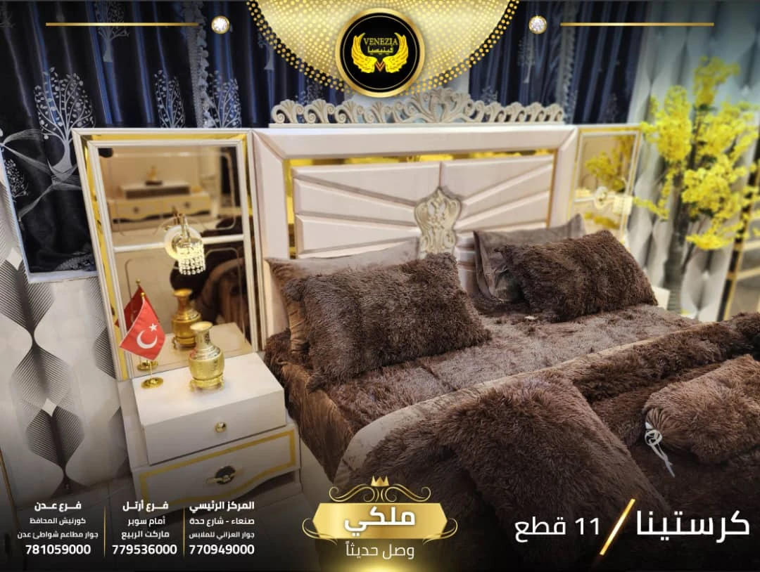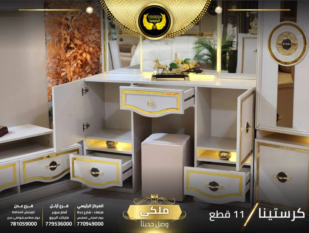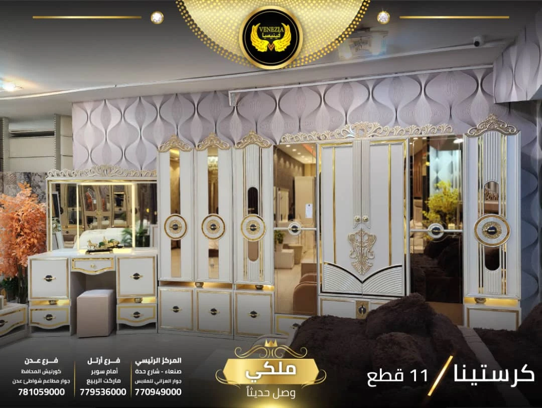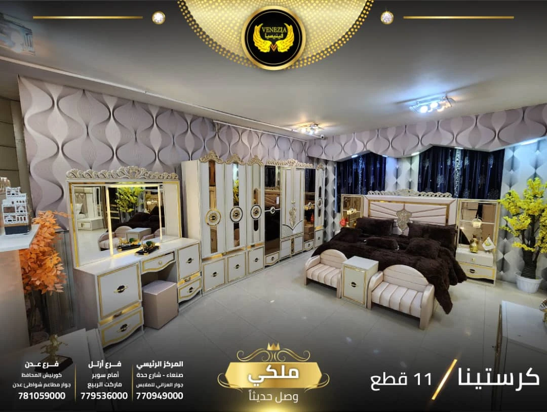 احصل على لمسة فاخرة في منزلك مع غرفة نوم تركي 11 قطعة من شركة فينيسيا مودرن، المصممة بجودة عالية وتشطيبات أنيقة تضيف جمالًا عصريًا لغرفة النوم.