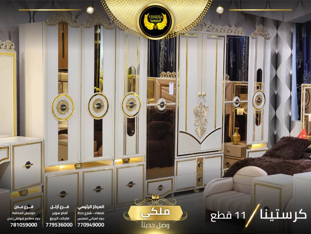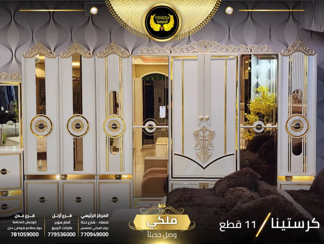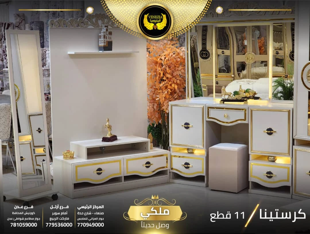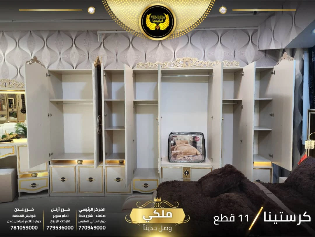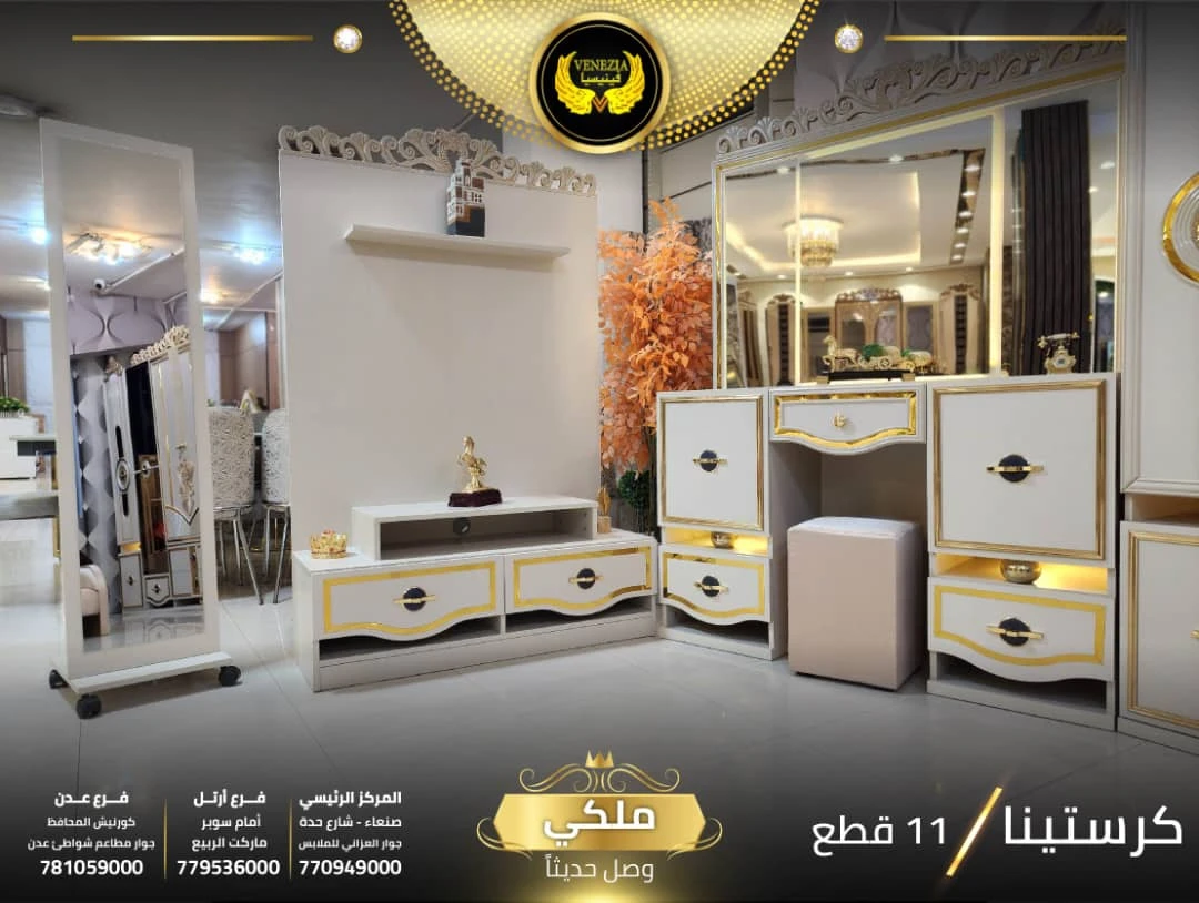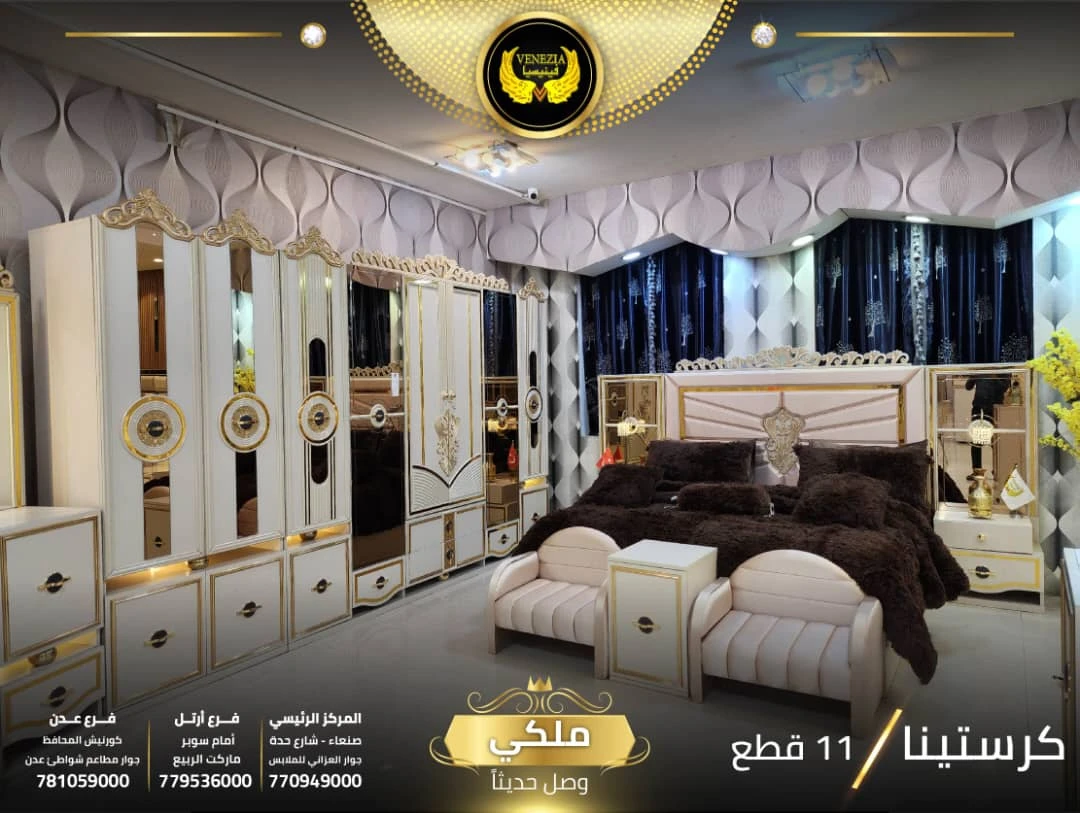 احصل على لمسة فاخرة في منزلك مع غرفة نوم تركي 11 قطعة من شركة فينيسيا مودرن، المصممة بجودة عالية وتشطيبات أنيقة تضيف جمالًا عصريًا لغرفة النوم.