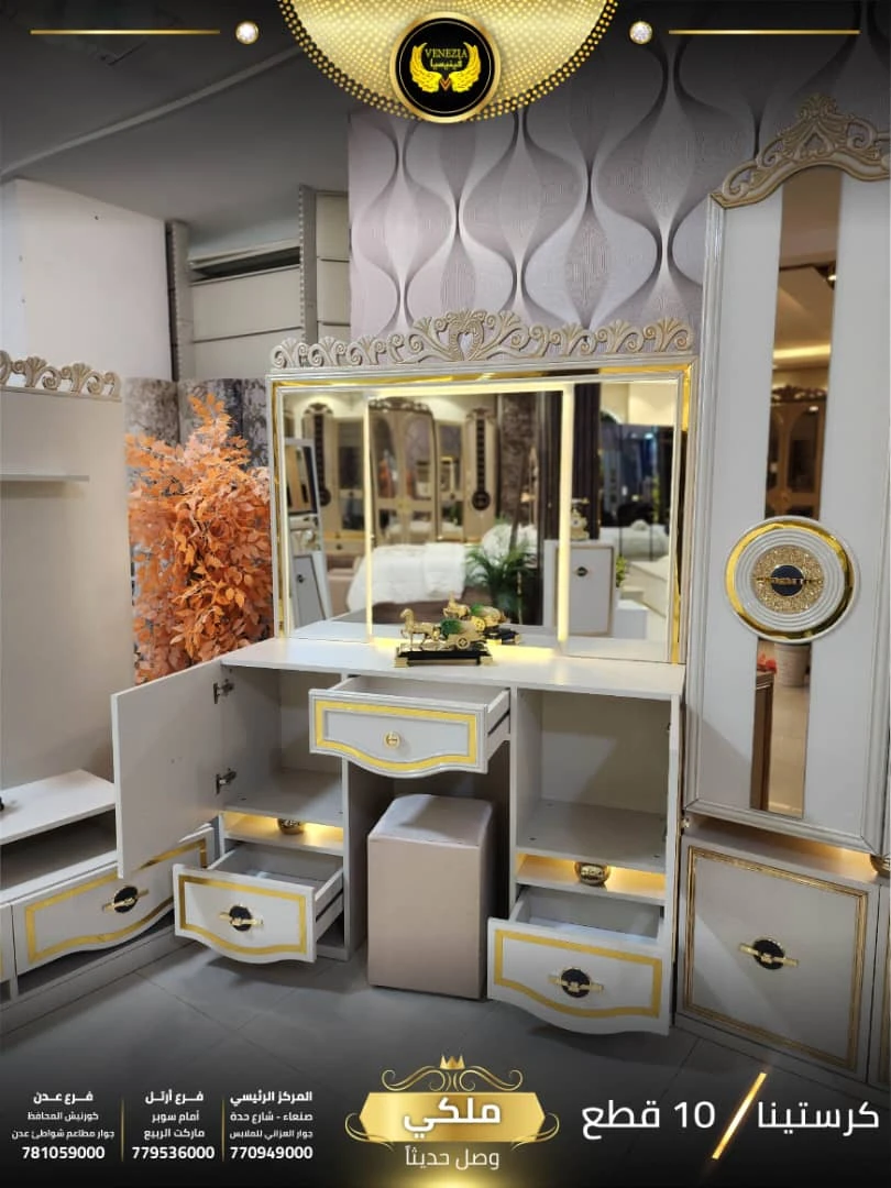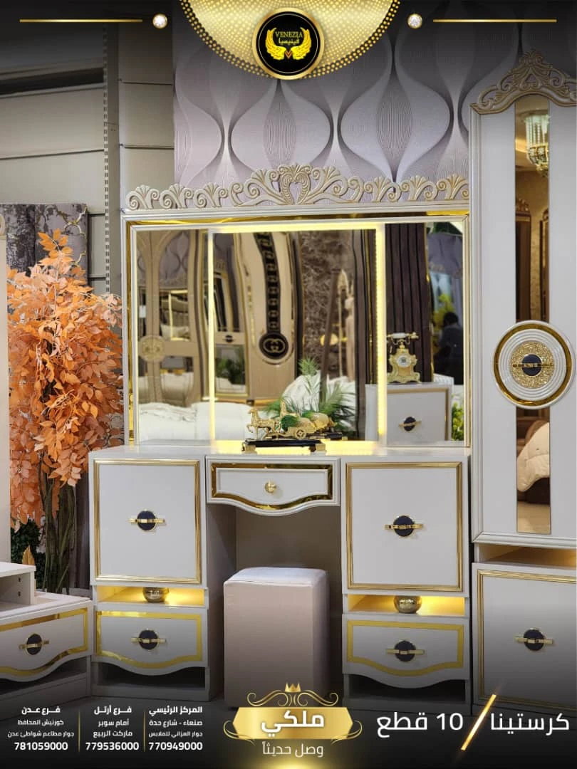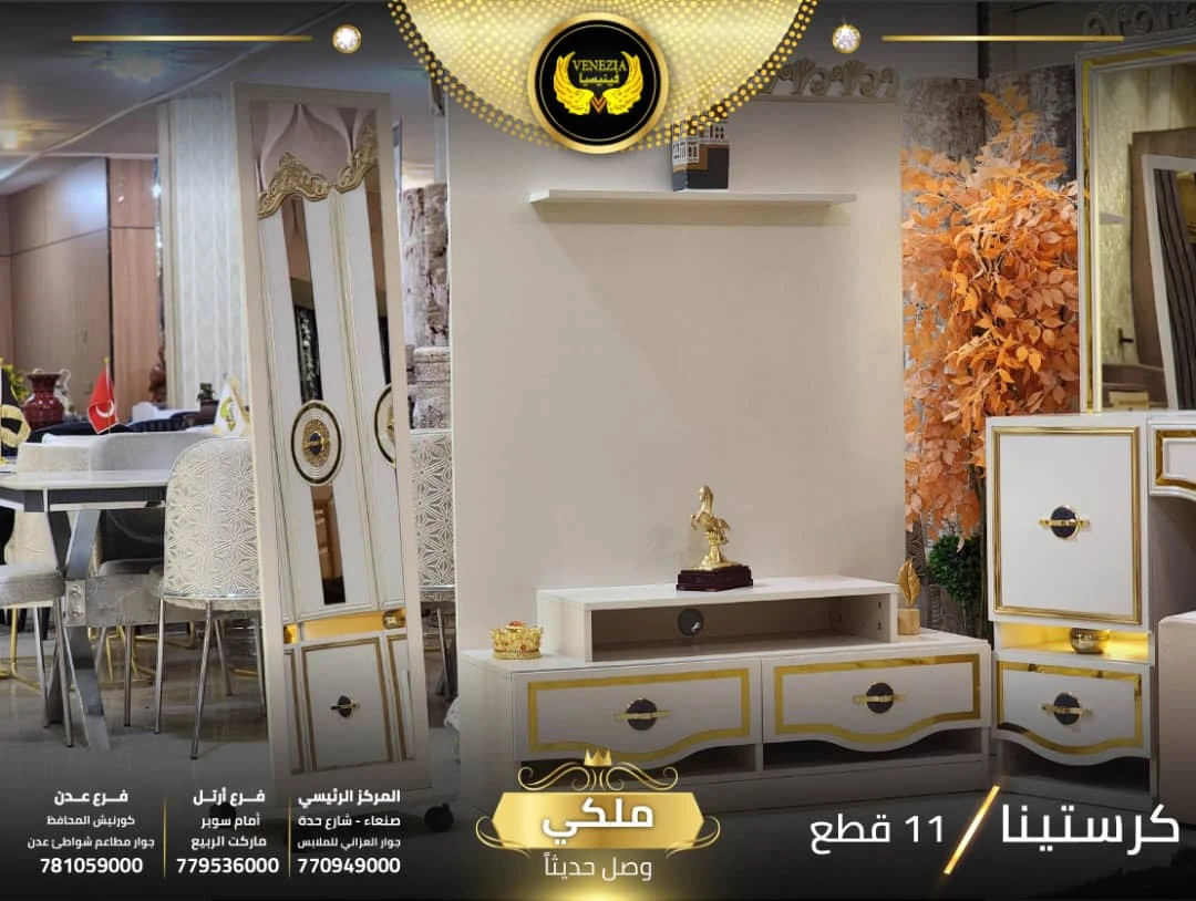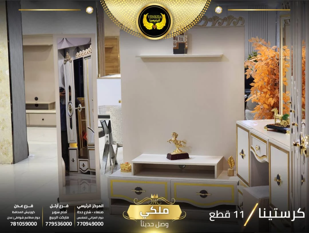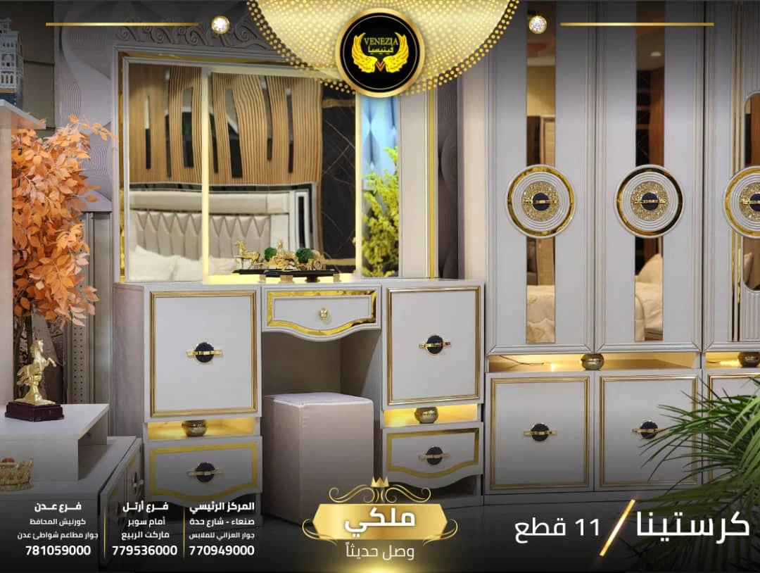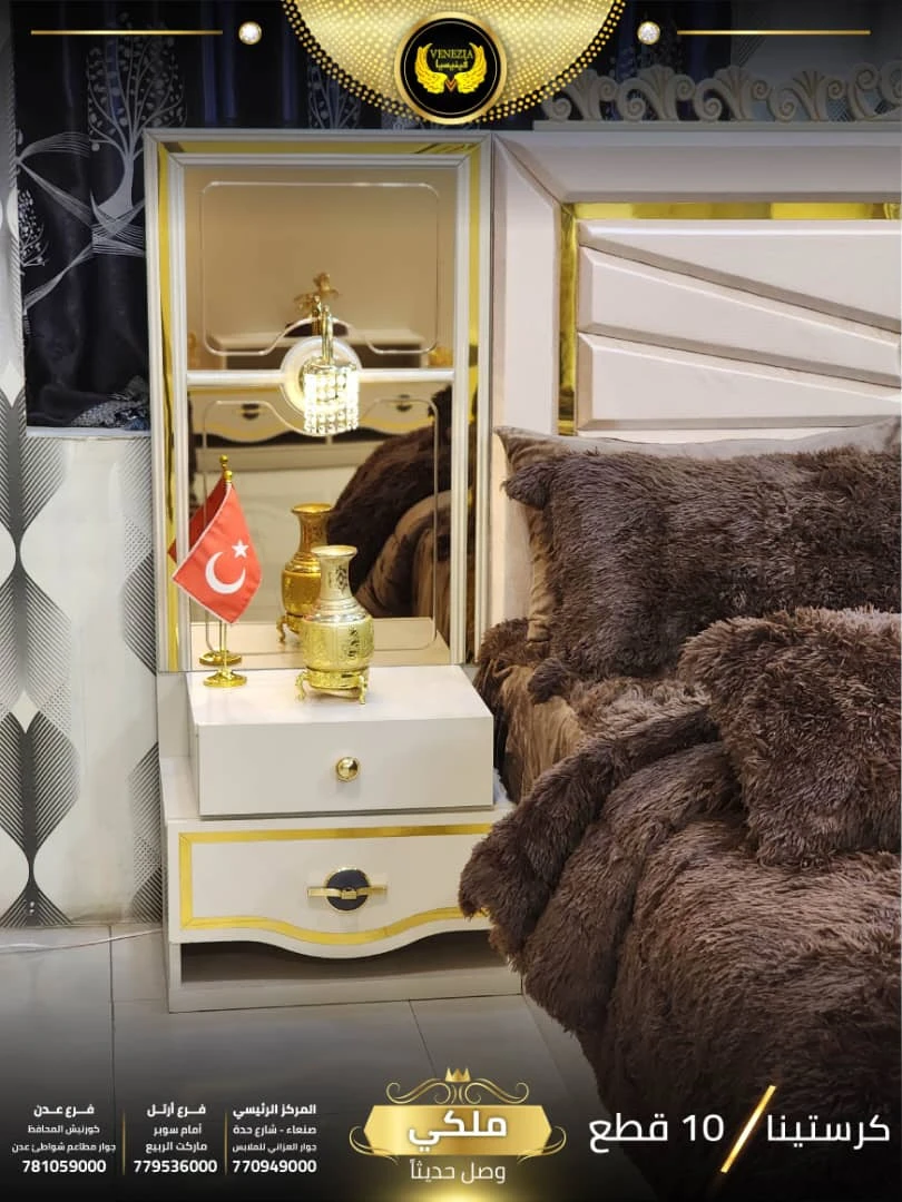 احصل على لمسة فاخرة في منزلك مع غرفة نوم تركي 11 قطعة من شركة فينيسيا مودرن، المصممة بجودة عالية وتشطيبات أنيقة تضيف جمالًا عصريًا لغرفة النوم.