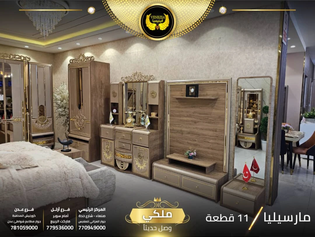 تجمع هذه الغرفة بين الفخامة والقوة والمتانة لتكون الخيار المثالي للمنازل في صنعاء، عدن، تعز، إب، الحديدة، حضرموت، مأرب وباقي محافظات اليمن.