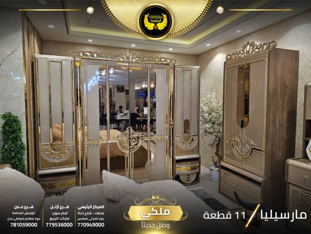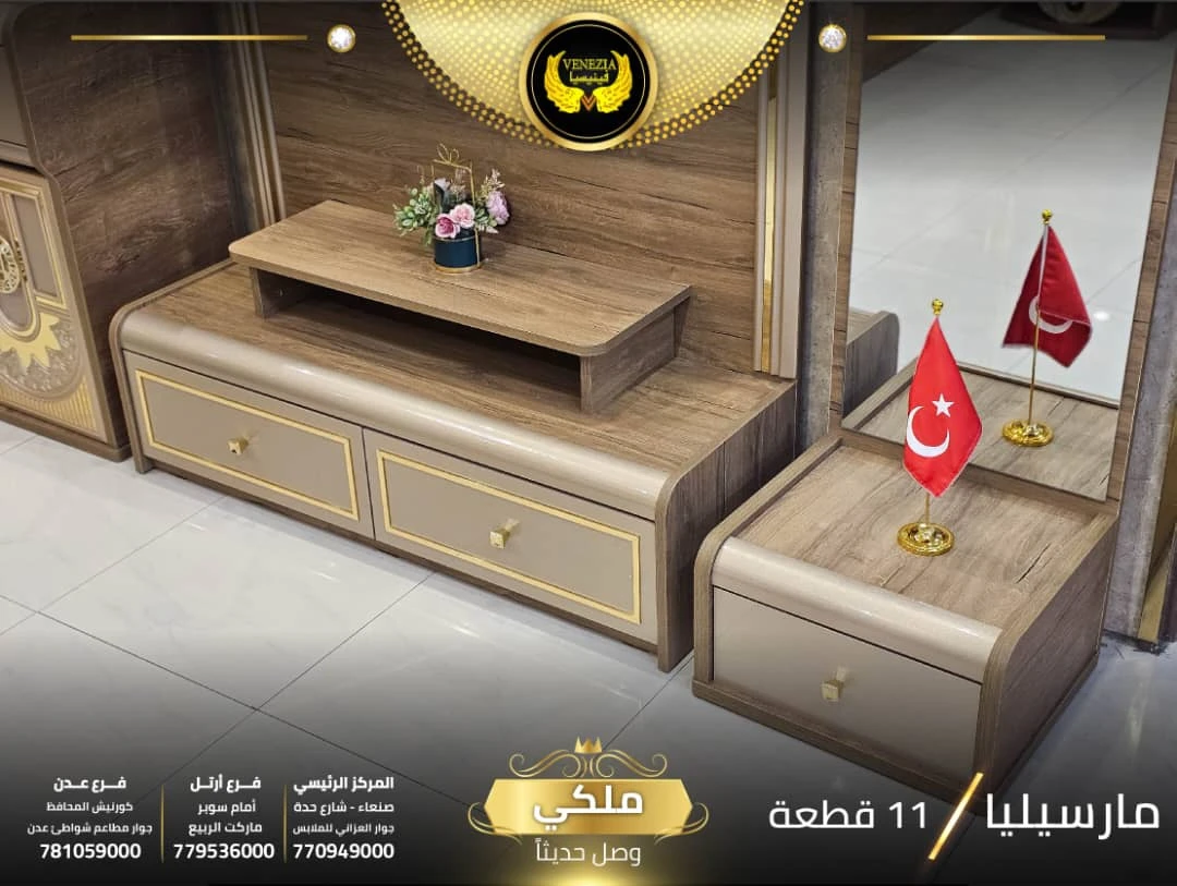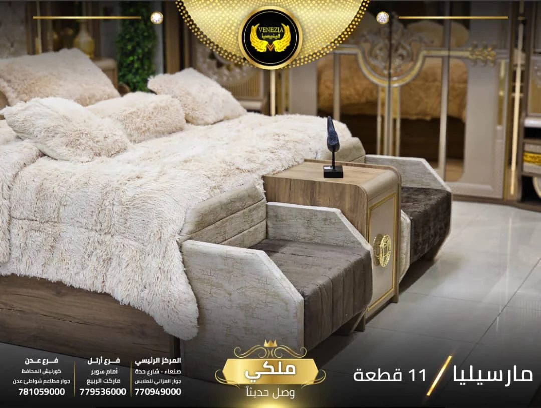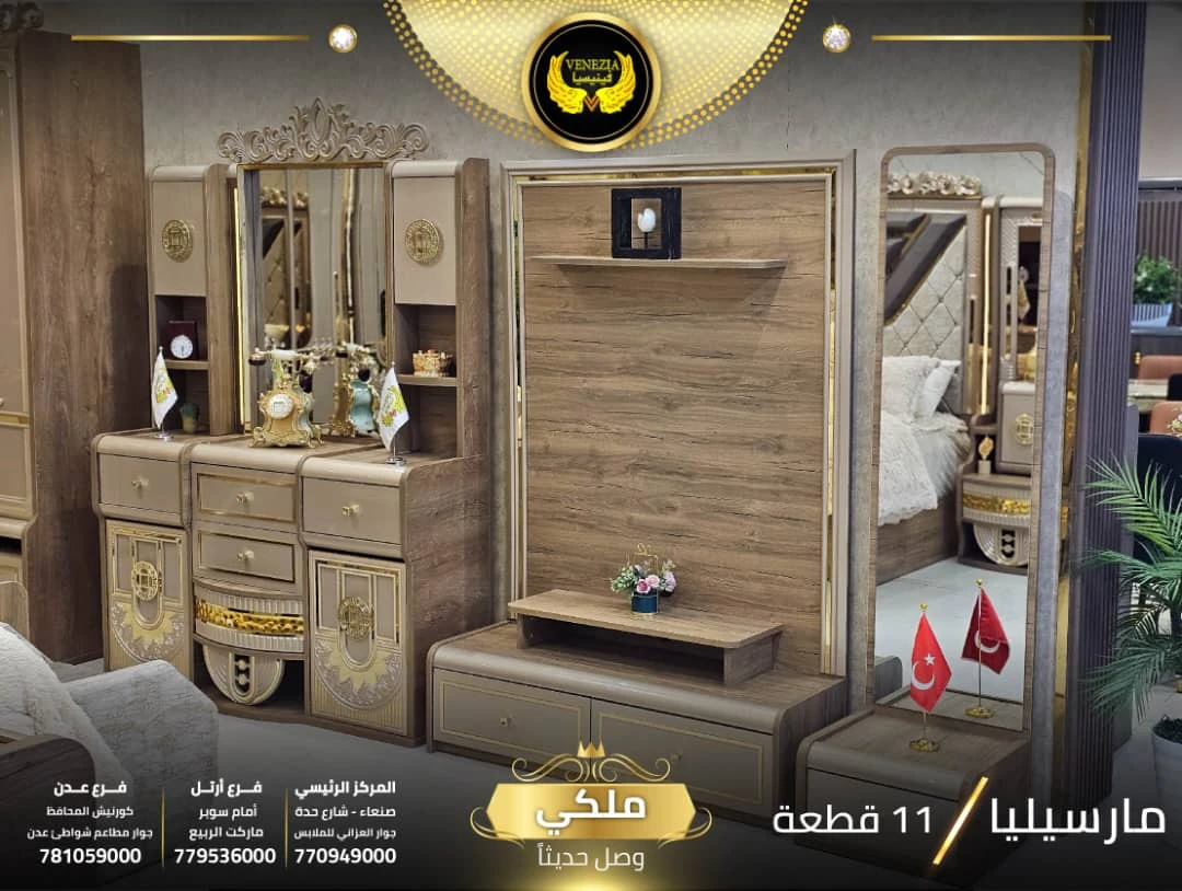 احصل على لمسة فاخرة في منزلك مع غرفة نوم تركي 11 قطعة من شركة فينيسيا مودرن، المصممة بجودة عالية وتشطيبات أنيقة تضيف جمالًا عصريًا لغرفة النوم.