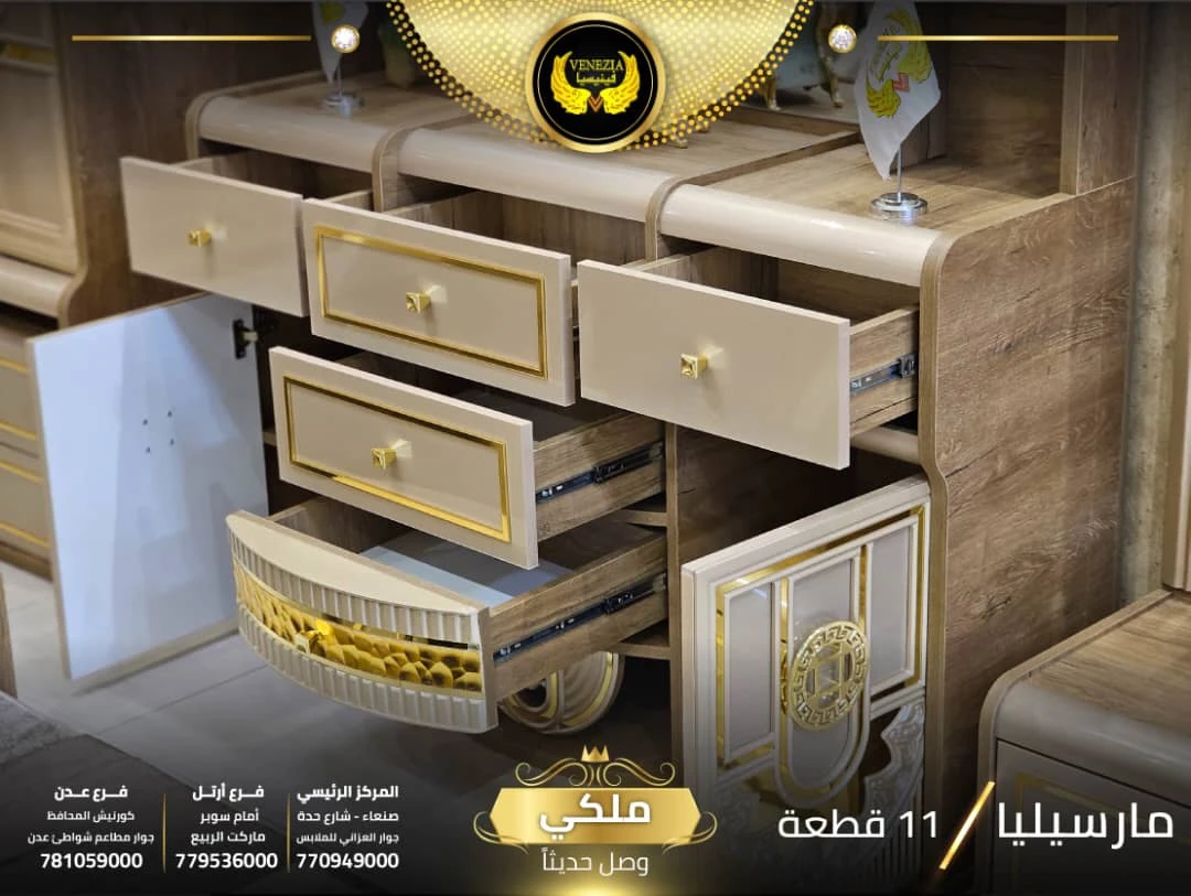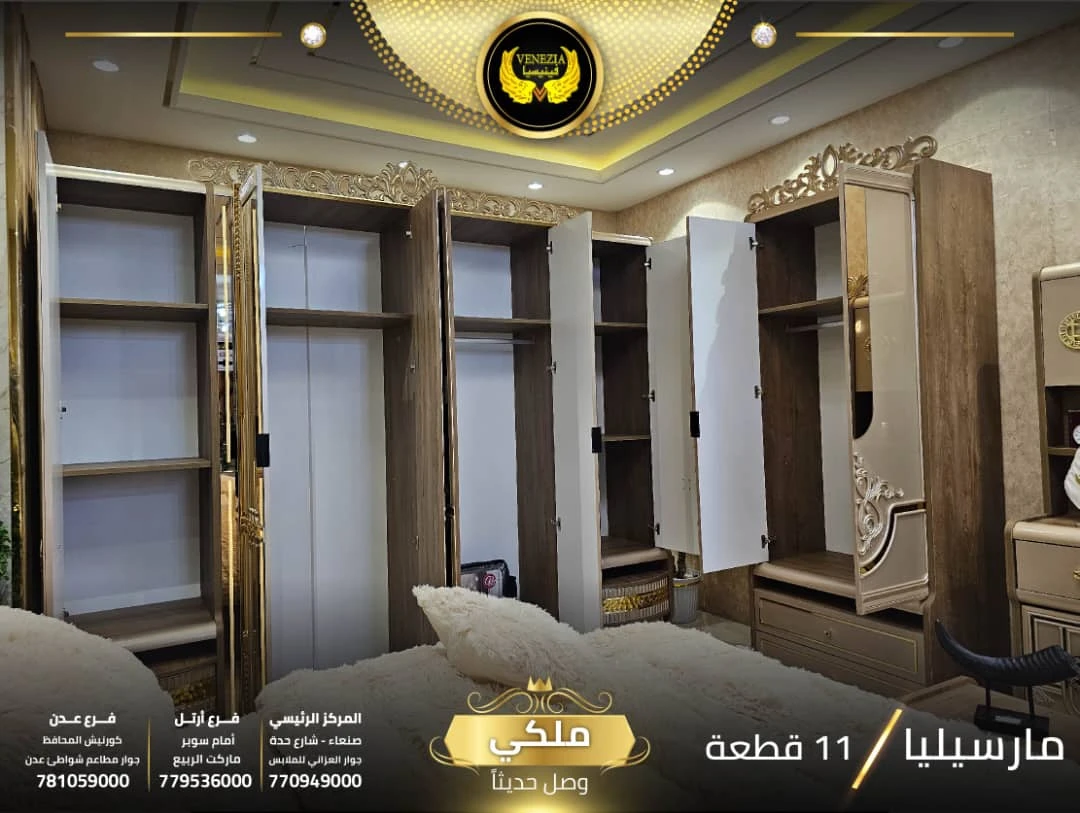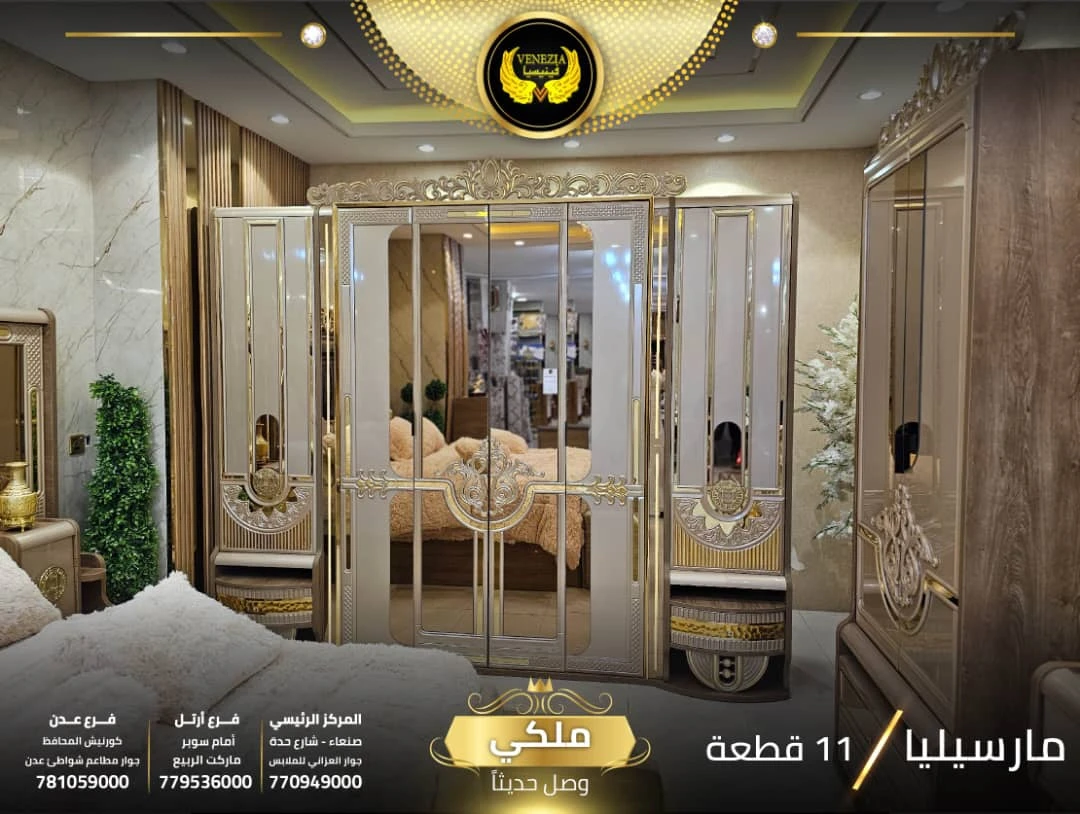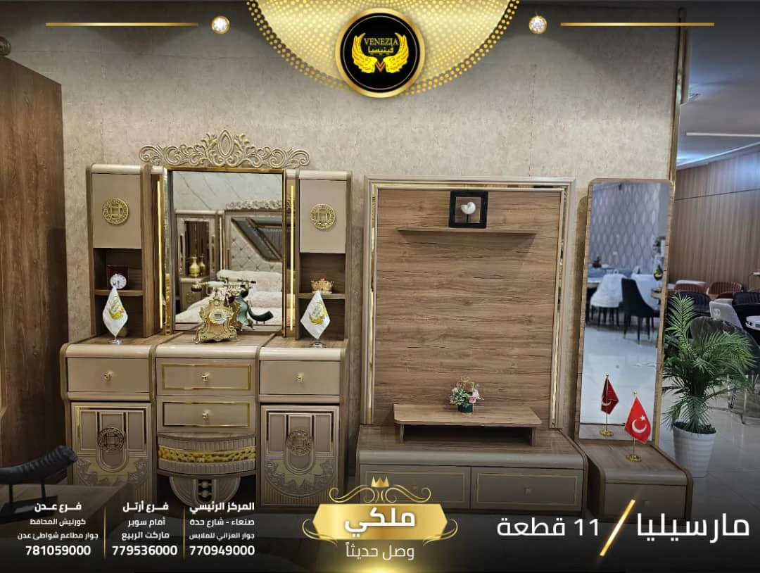 احصل على لمسة فاخرة في منزلك مع غرفة نوم تركي 11 قطعة من شركة فينيسيا مودرن، المصممة بجودة عالية وتشطيبات أنيقة تضيف جمالًا عصريًا لغرفة النوم.
