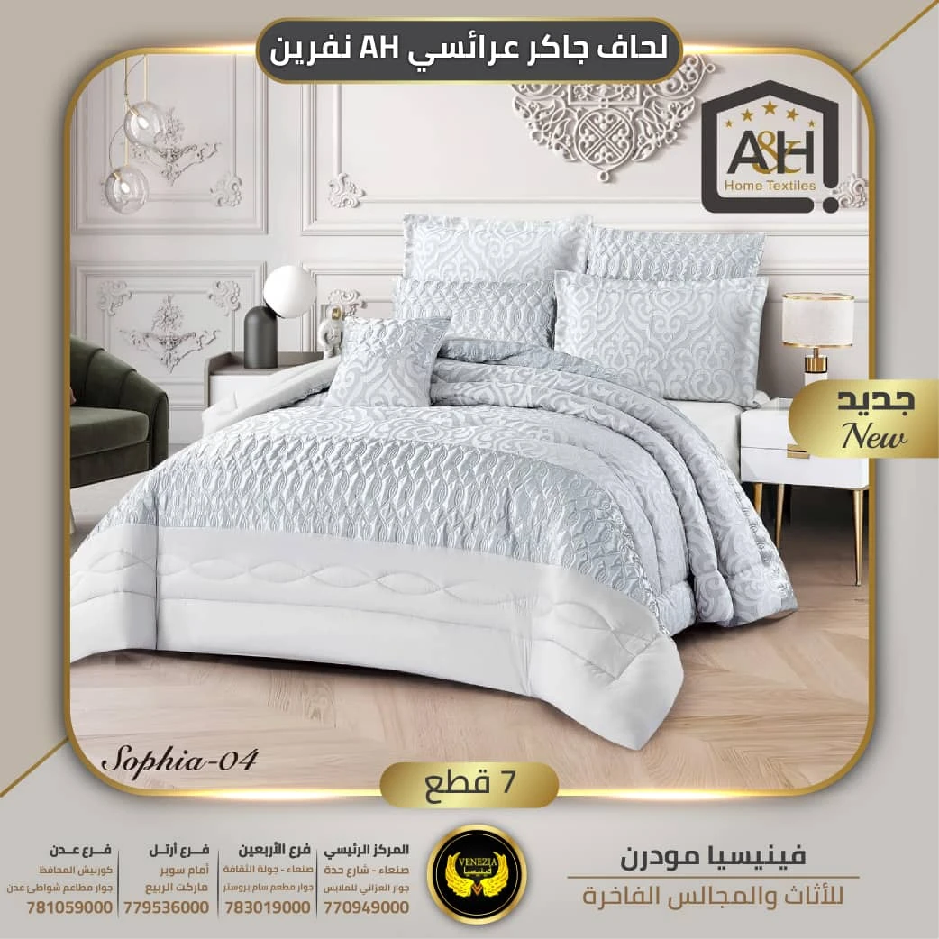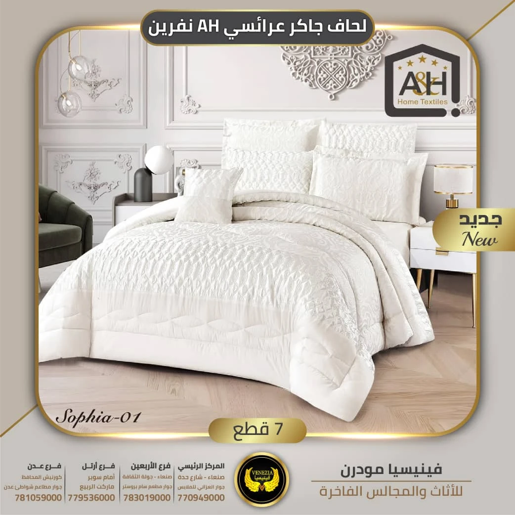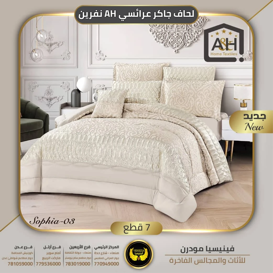 7 قطع كاملة تشمل اللحاف والوسادات وملحقاتها.