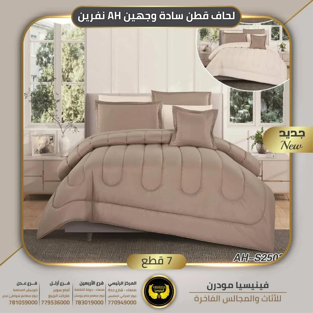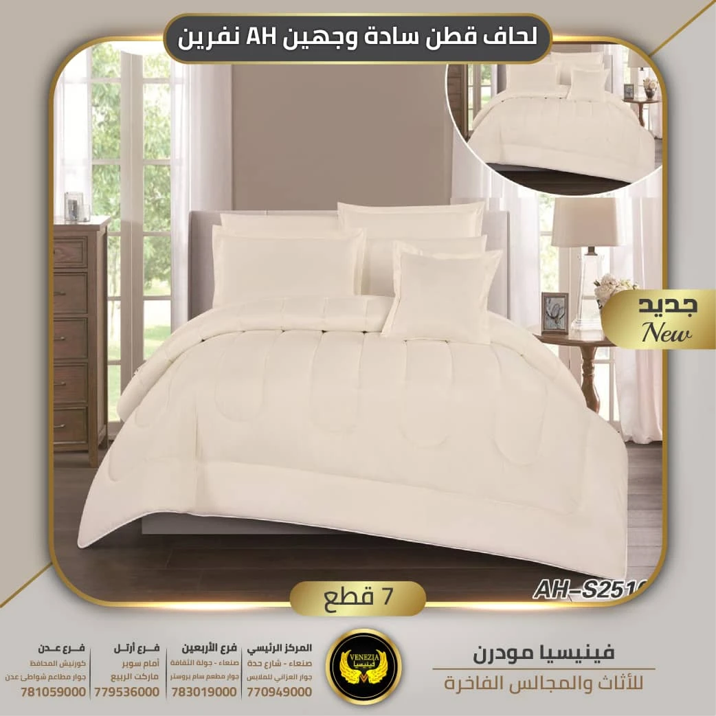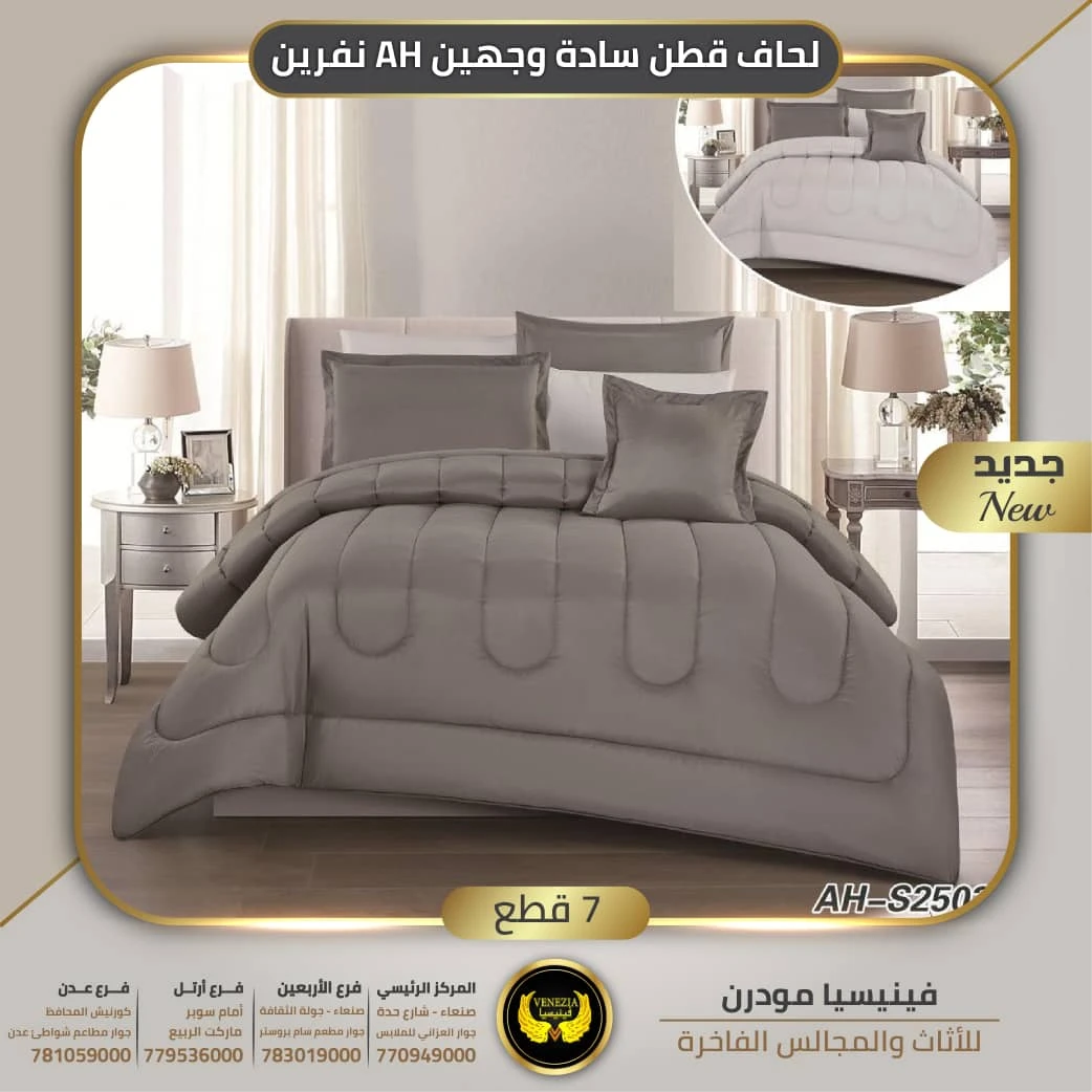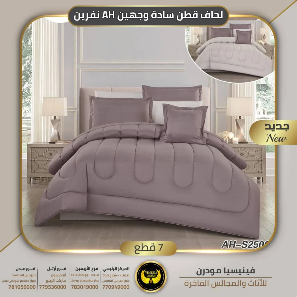 امنح غرفة نومك مظهرًا أنيقًا وبسيطًا مع لحافات قطن سادة وجهين AH – طقم نفرين 7 قطع من فينيسيا مودرن.