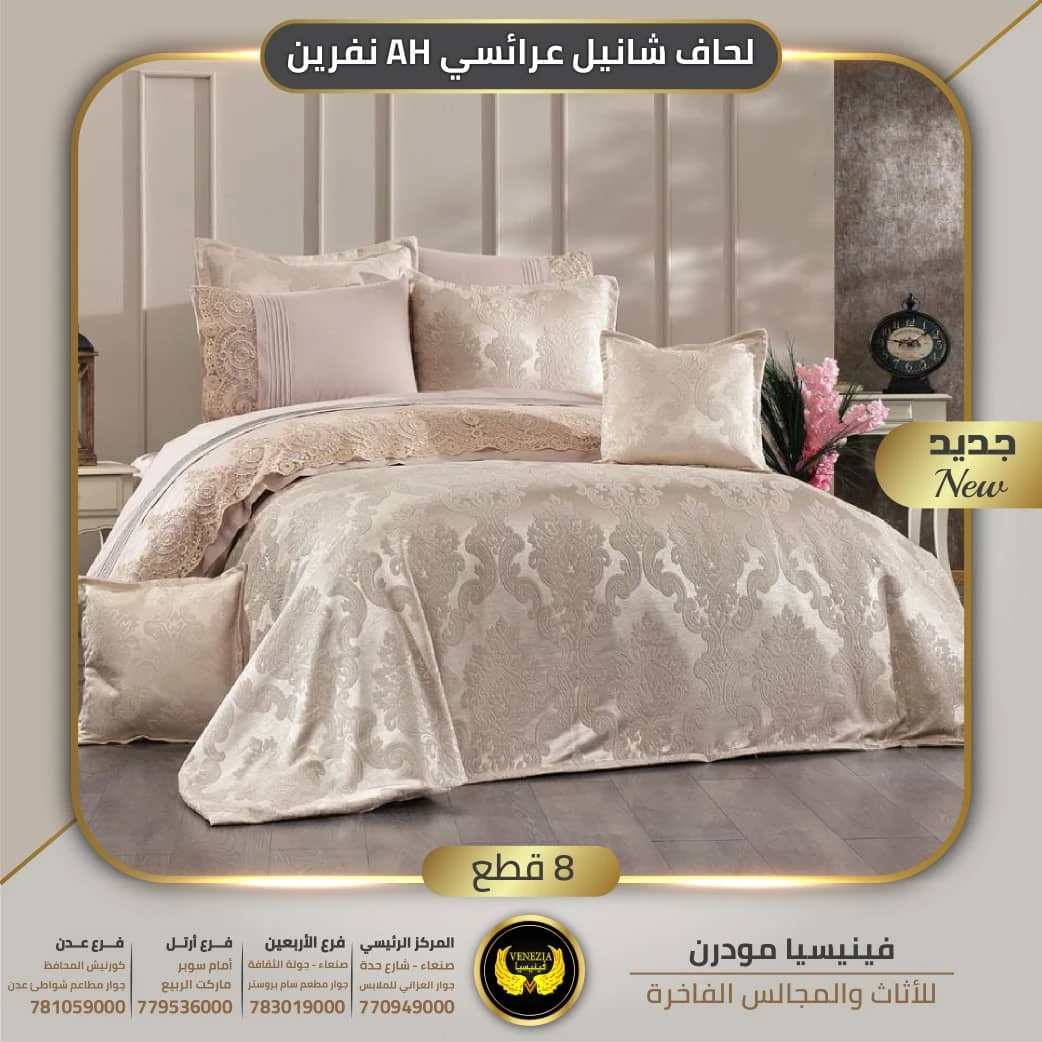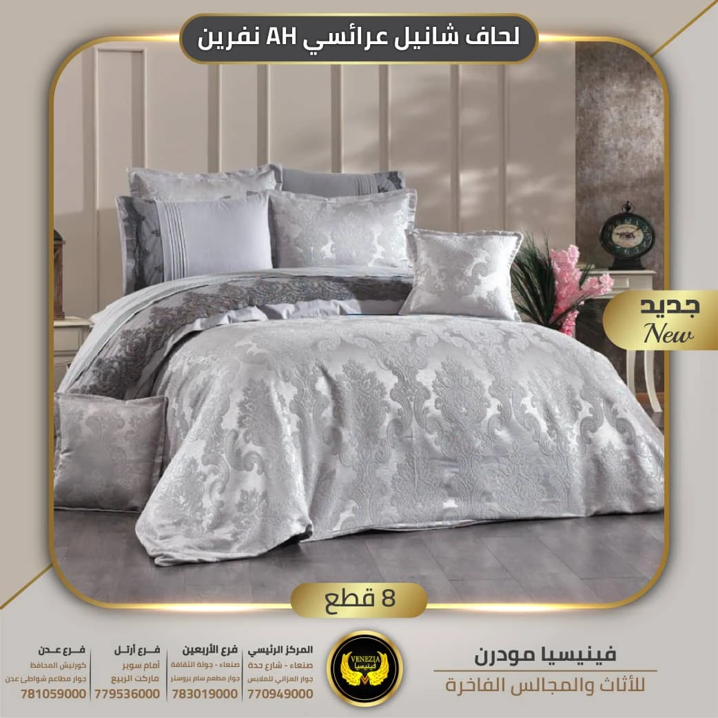 امنحي غرفة نومك لمسة من الفخامة مع لحافات شانيل نفرين 8 قطع AH المتوفرة لدى فينيسيا مودرن.