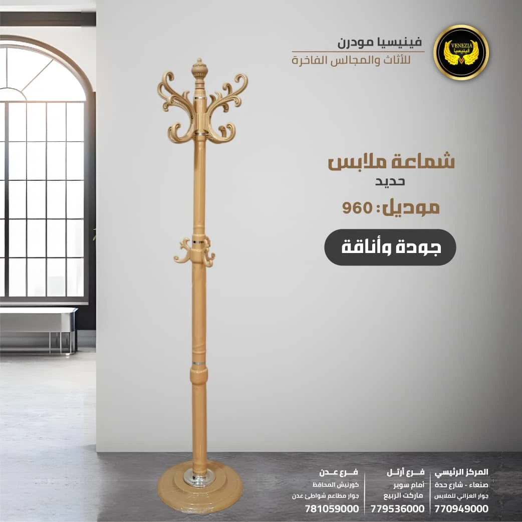 شماعات وعلاقات ملابس خشب وحديد من فينيسيا مودرن تتميز بقوة التحمل والتصميم العصري الذي يناسب جميع البيوت في اليمن. مصنوعة من خامات ممتازة تجمع بين صلابة الحديد وأناقة الخشب، مناسبة لتعليق الملابس اليومية والمعاطف والعبايات. تتوفر بأشكال وأحجام متعددة مع إمكانية التوصيل لجميع المحافظات بما في ذلك صنعاء، عدن، تعز، إب والحديدة.