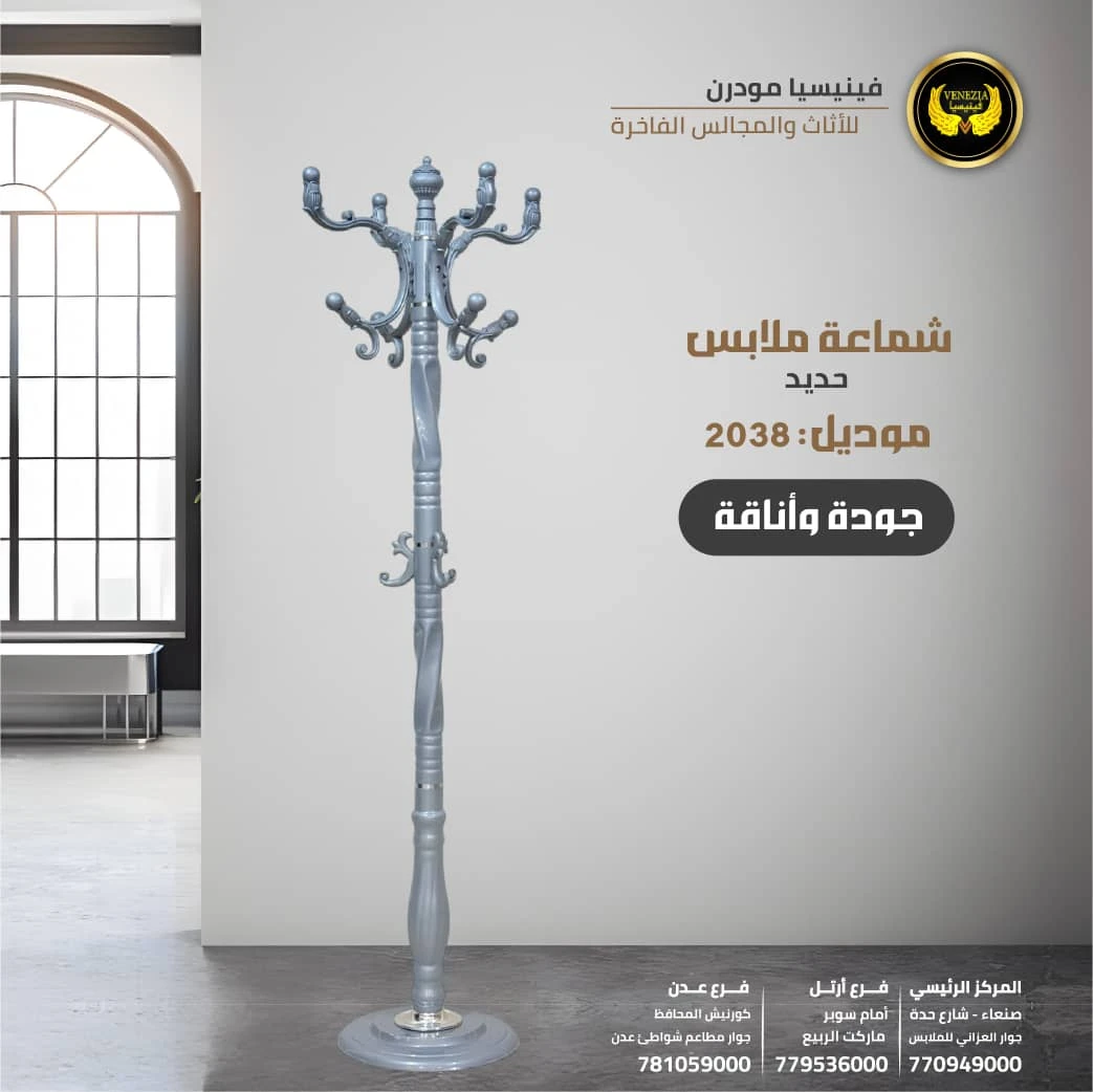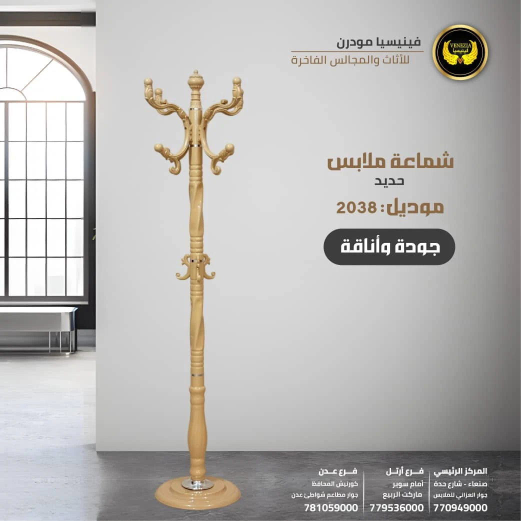 شماعات وعلاقات ملابس خشب وحديد من فينيسيا مودرن تتميز بقوة التحمل والتصميم العصري الذي يناسب جميع البيوت في اليمن. مصنوعة من خامات ممتازة تجمع بين صلابة الحديد وأناقة الخشب، مناسبة لتعليق الملابس اليومية والمعاطف والعبايات. تتوفر بأشكال وأحجام متعددة مع إمكانية التوصيل لجميع المحافظات بما في ذلك صنعاء، عدن، تعز، إب والحديدة.