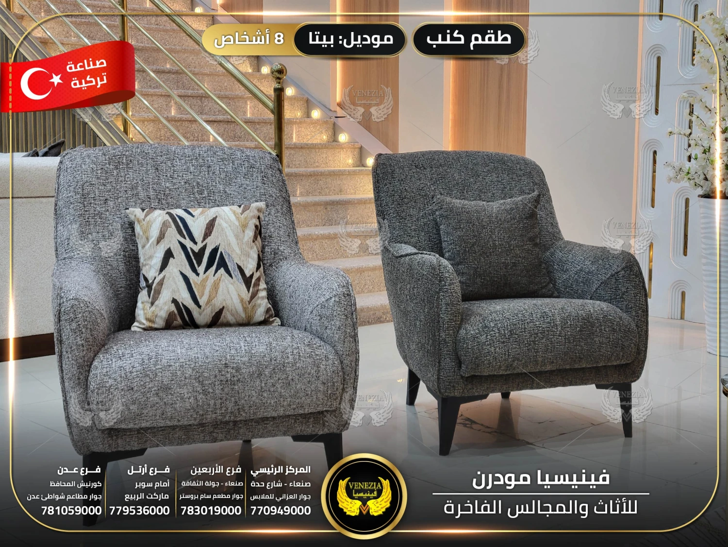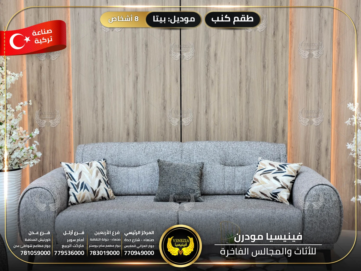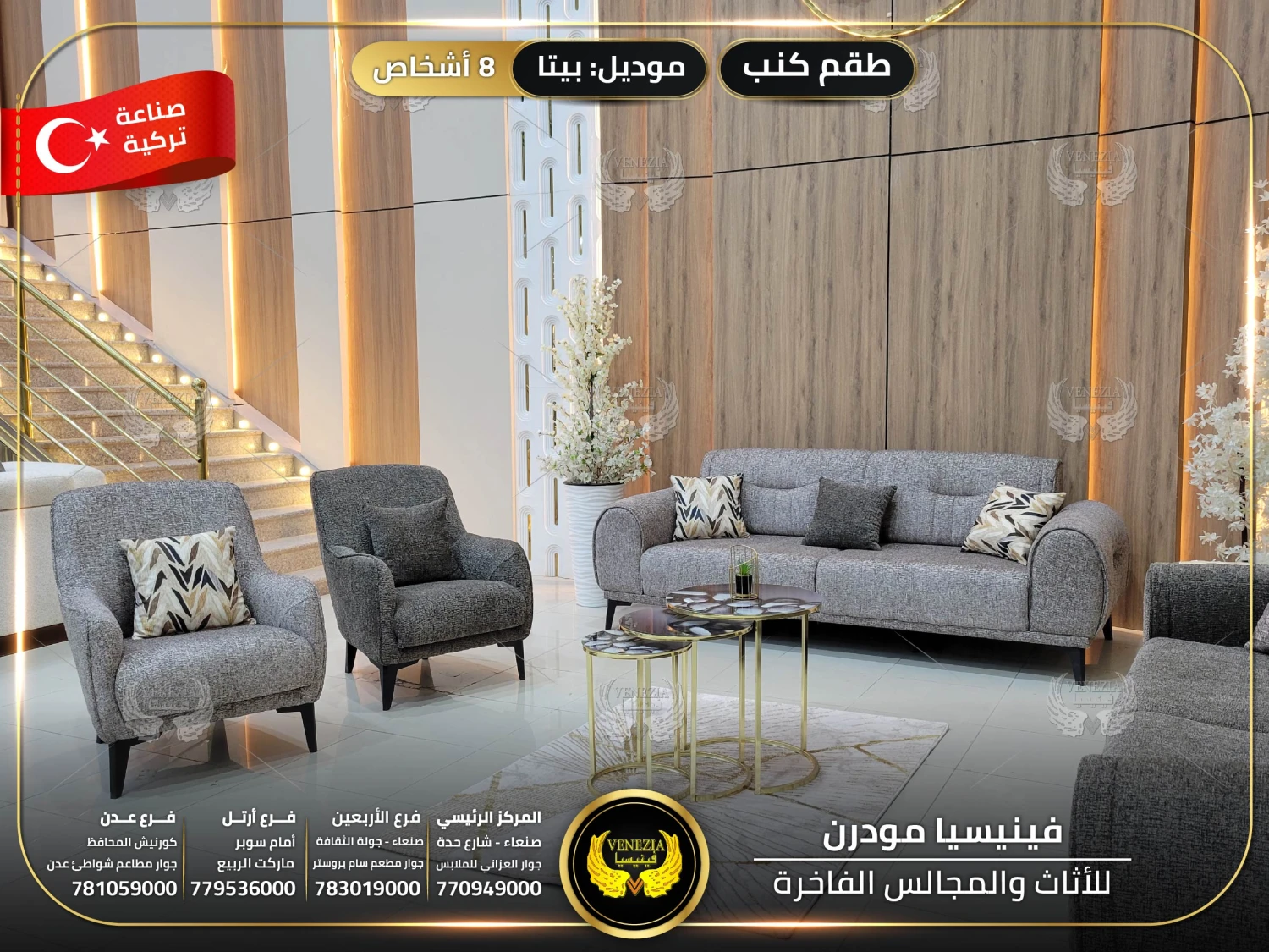 أضف لمسة فاخرة لمجلسك أو غرفة جلوسك مع الكنب التركي الفاخر المعروف بتصميمه الأنيق وجودته العالية. يجمع هذا الكنب بين الراحة والمتانة، ليمنح منزلك أسلوبًا راقيًا يتناسب مع ذوق العائلات في صنعاء وعدن وتعز والحديدة وإب وجميع محافظات اليمن.