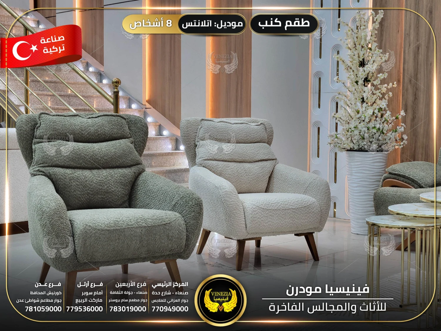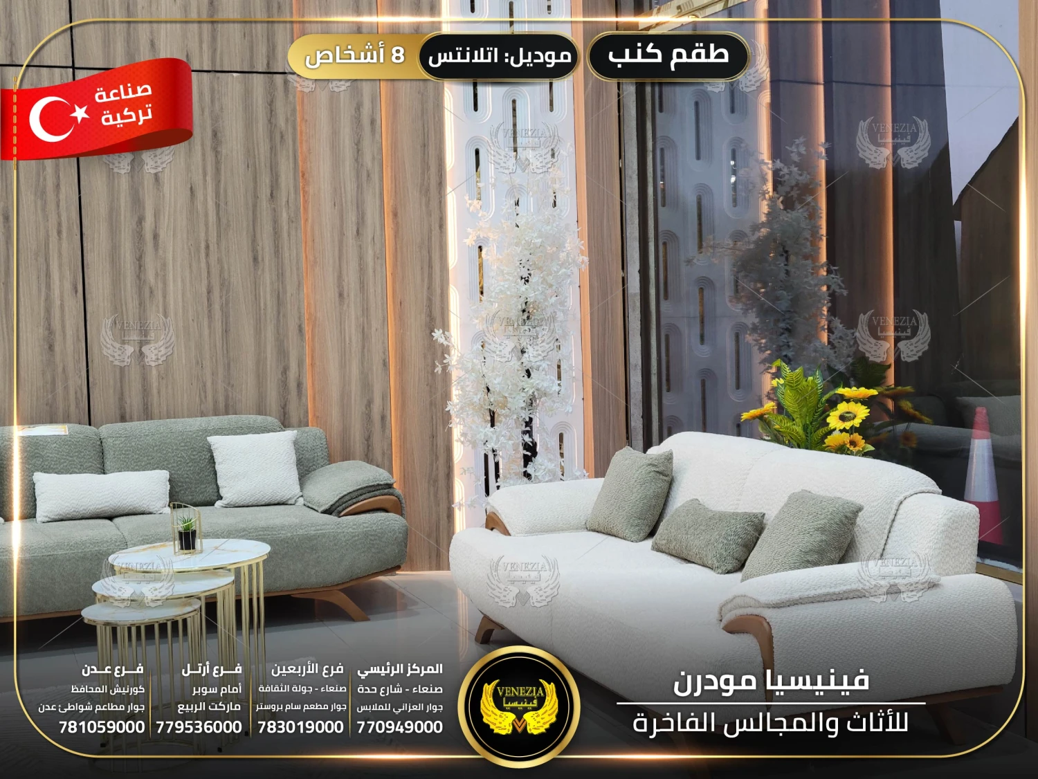 أضف لمسة فاخرة لمجلسك أو غرفة جلوسك مع الكنب التركي الفاخر المعروف بتصميمه الأنيق وجودته العالية. يجمع هذا الكنب بين الراحة والمتانة، ليمنح منزلك أسلوبًا راقيًا يتناسب مع ذوق العائلات في صنعاء وعدن وتعز والحديدة وإب وجميع محافظات اليمن.