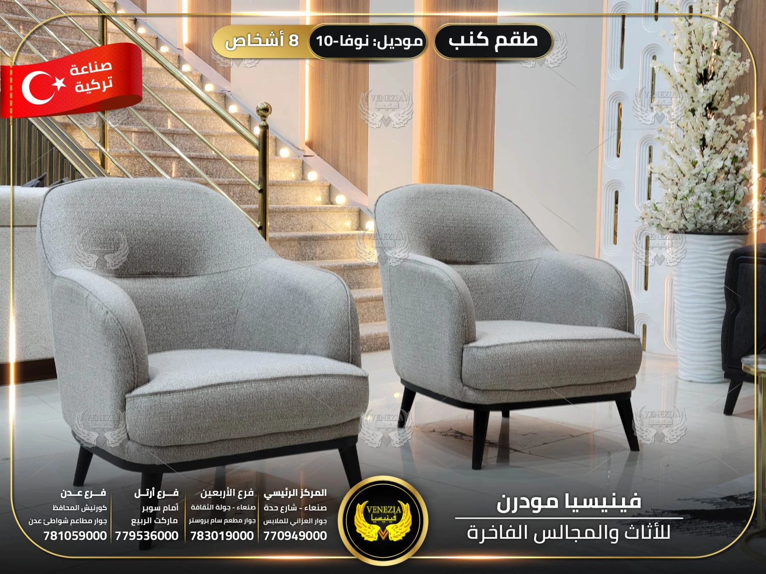 أضف لمسة فاخرة لمجلسك أو غرفة جلوسك مع الكنب التركي الفاخر المعروف بتصميمه الأنيق وجودته العالية. يجمع هذا الكنب بين الراحة والمتانة، ليمنح منزلك أسلوبًا راقيًا يتناسب مع ذوق العائلات في صنعاء وعدن وتعز والحديدة وإب وجميع محافظات اليمن.