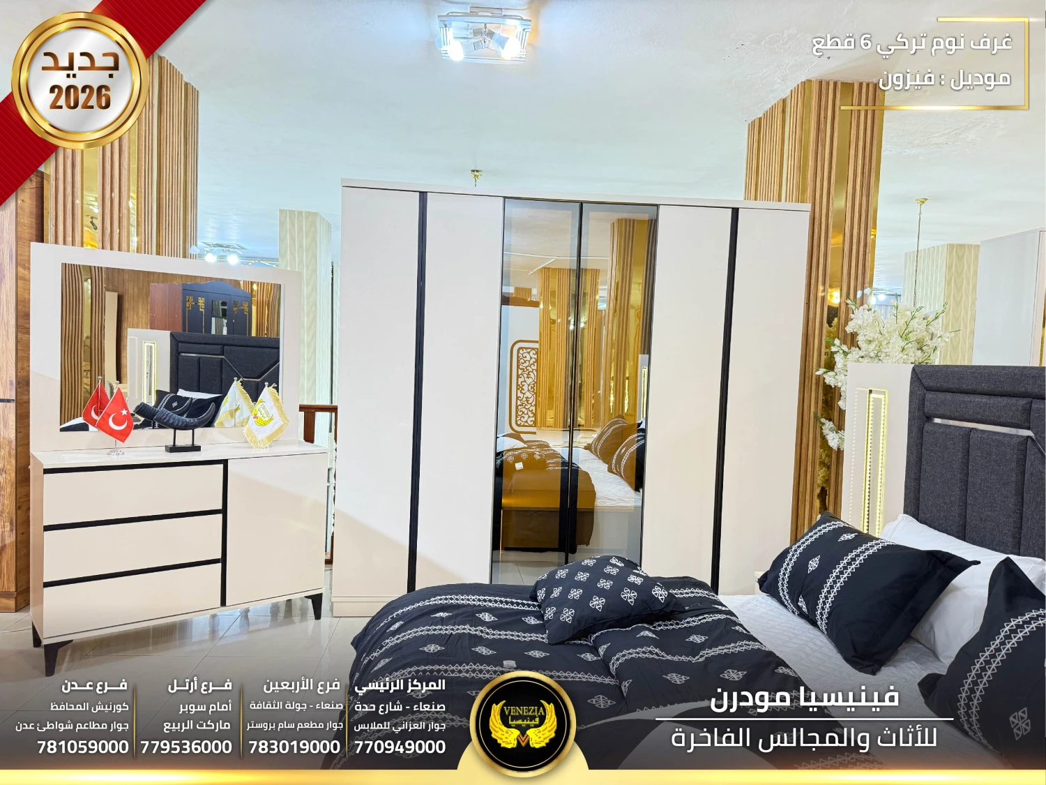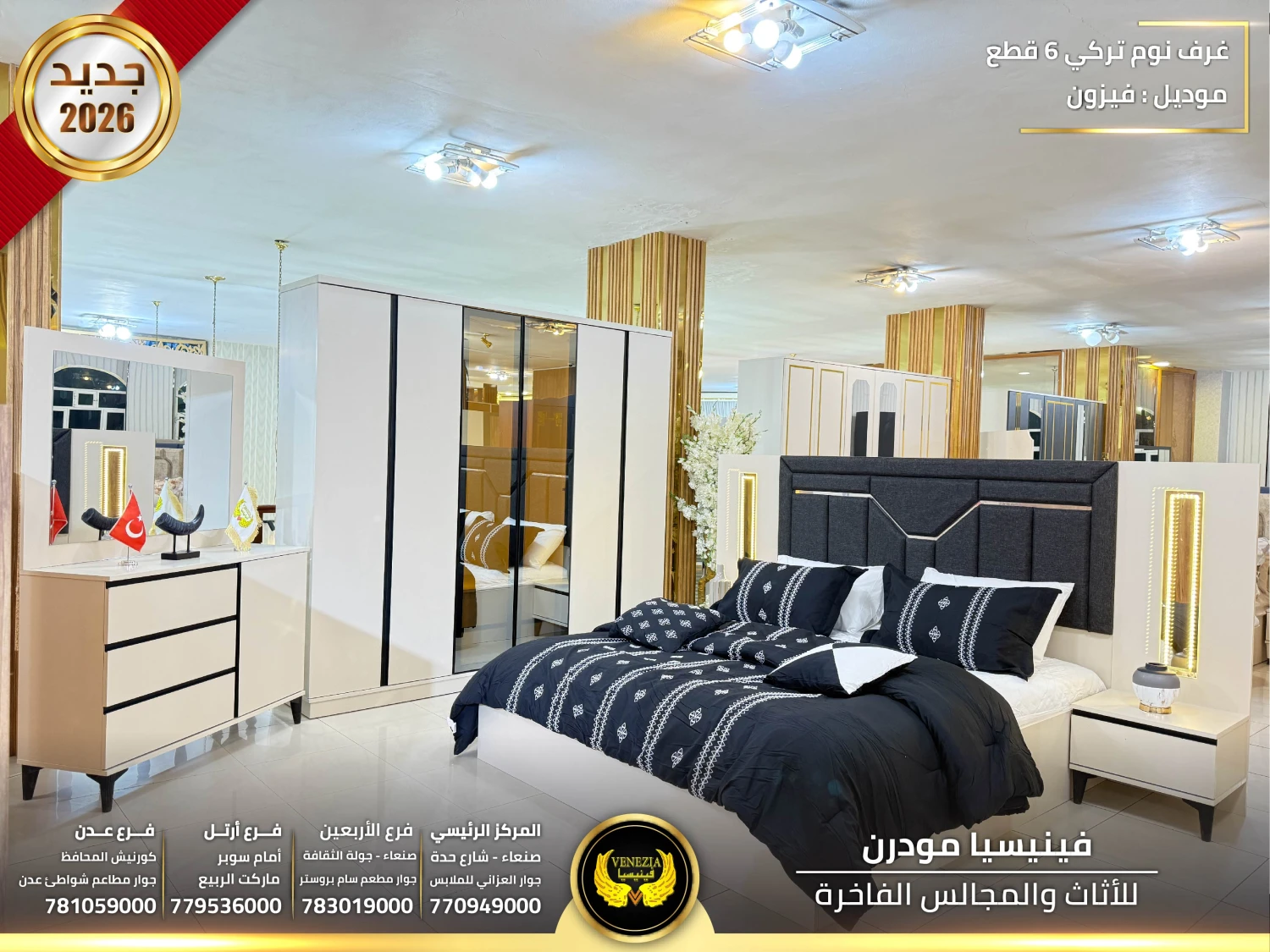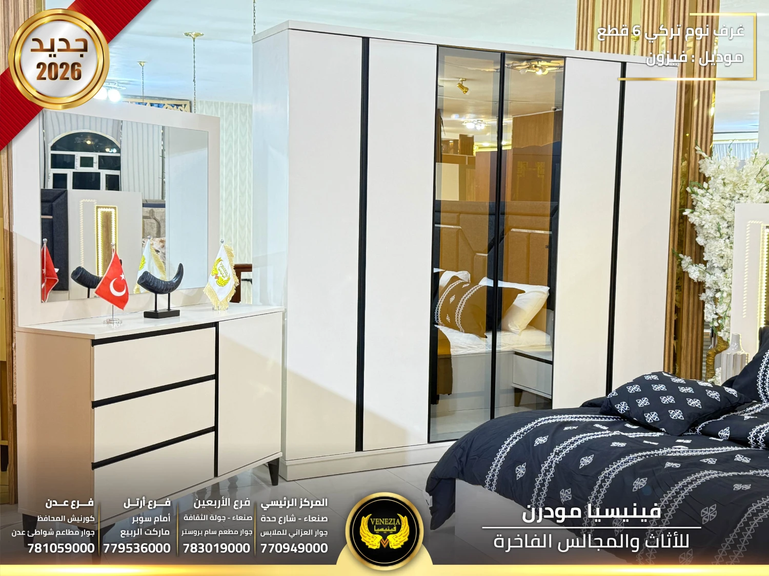 غرفة نوم تركي اقتصادي 6 قطع من فينيسيا مودرن في اليمن، تصميم عصري بجودة ممتازة وسعر مناسب. الخيار المثالي لمن يبحث عن الأناقة والتوفير. اطلب الآن مع خدمة توصيل.
