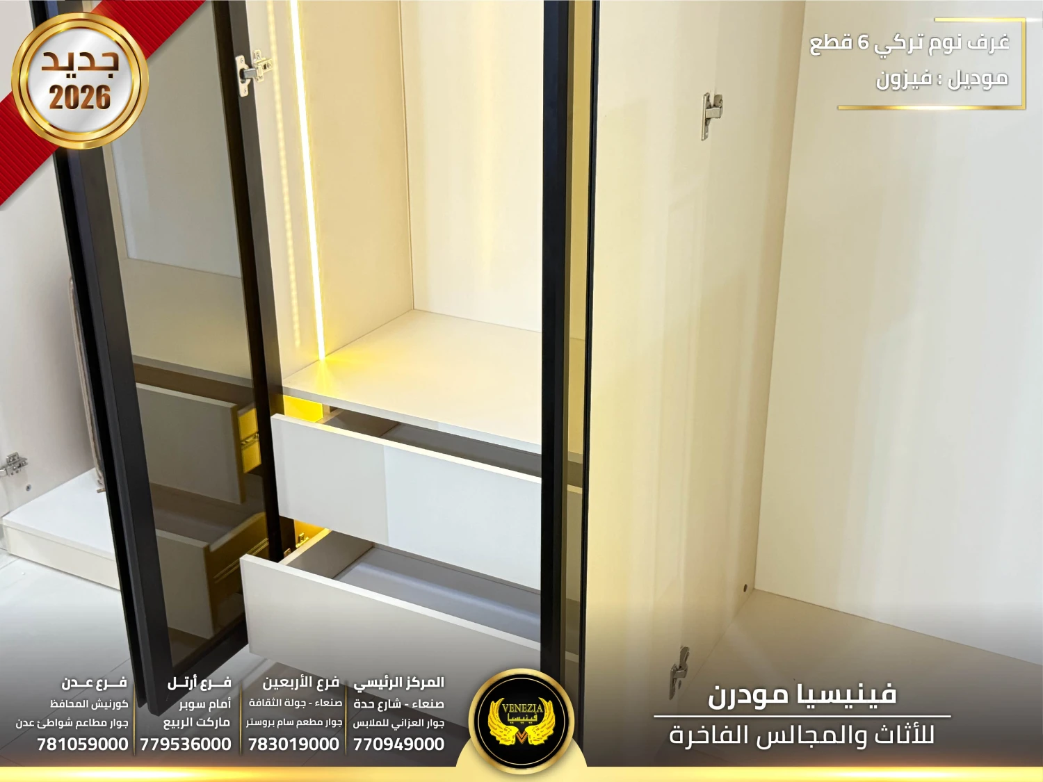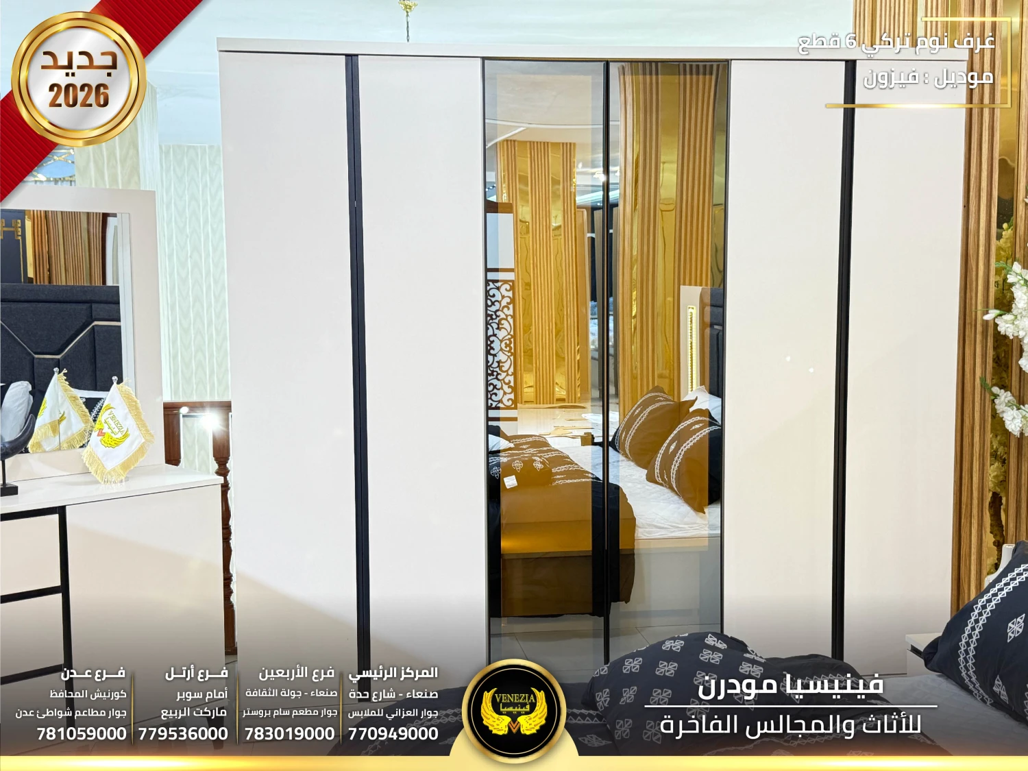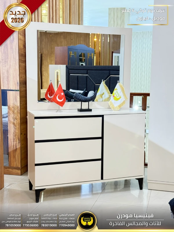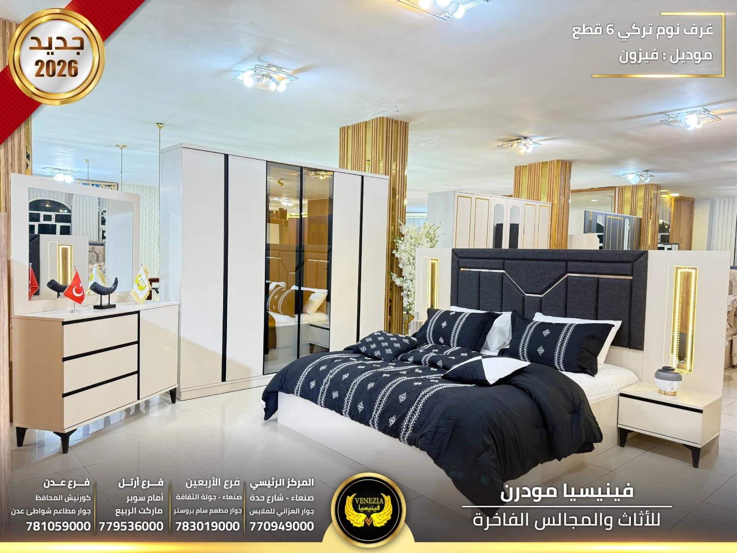 غرفة نوم تركي اقتصادي 6 قطع من فينيسيا مودرن في اليمن، تصميم عصري بجودة ممتازة وسعر مناسب. الخيار المثالي لمن يبحث عن الأناقة والتوفير. اطلب الآن مع خدمة توصيل.
