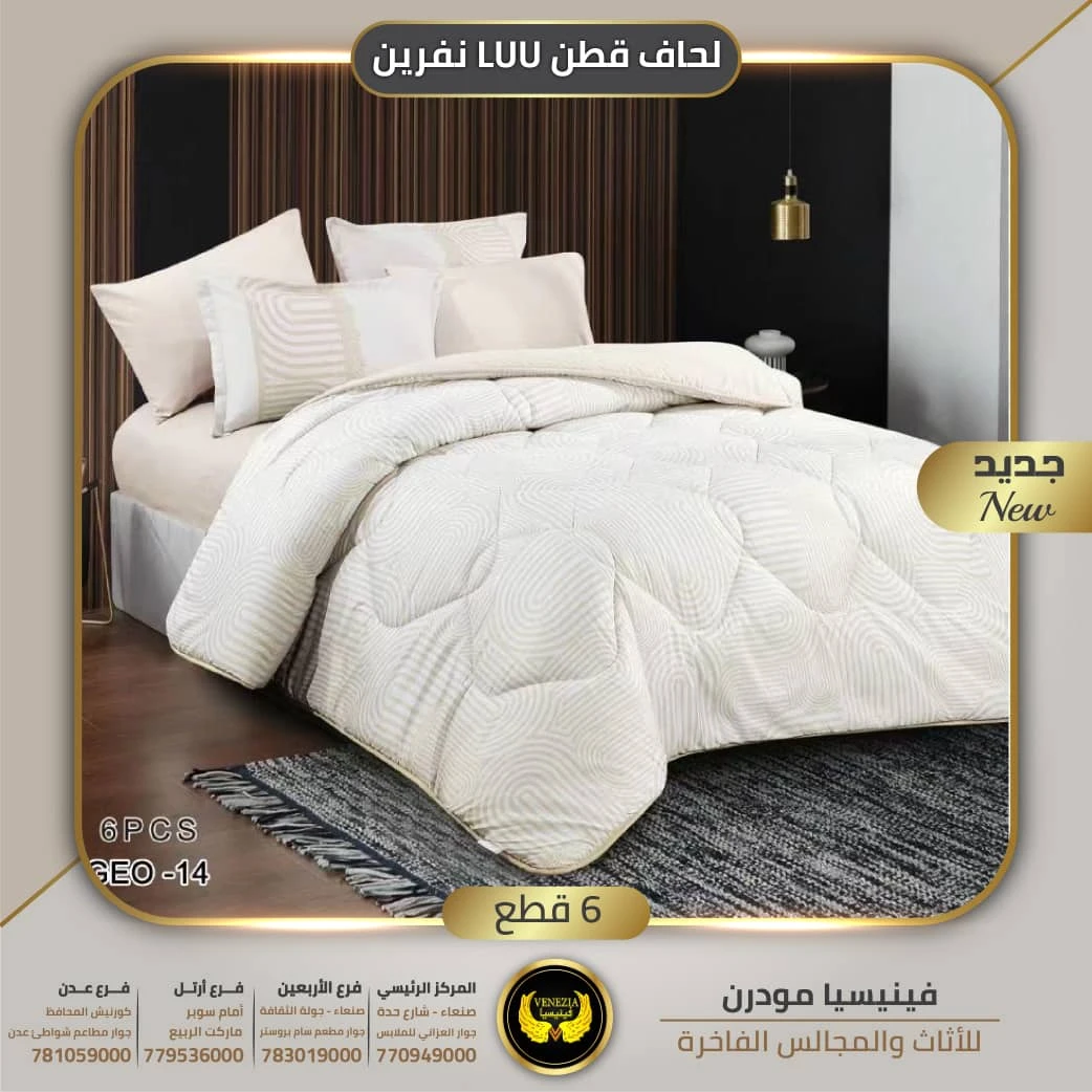 امنح غرفة نومك لمسة من الفخامة والراحة مع لحافات قطن نفرين 6 قطع من ماركة LUU المتوفرة حصريًا لدى فينيسيا مودرن.