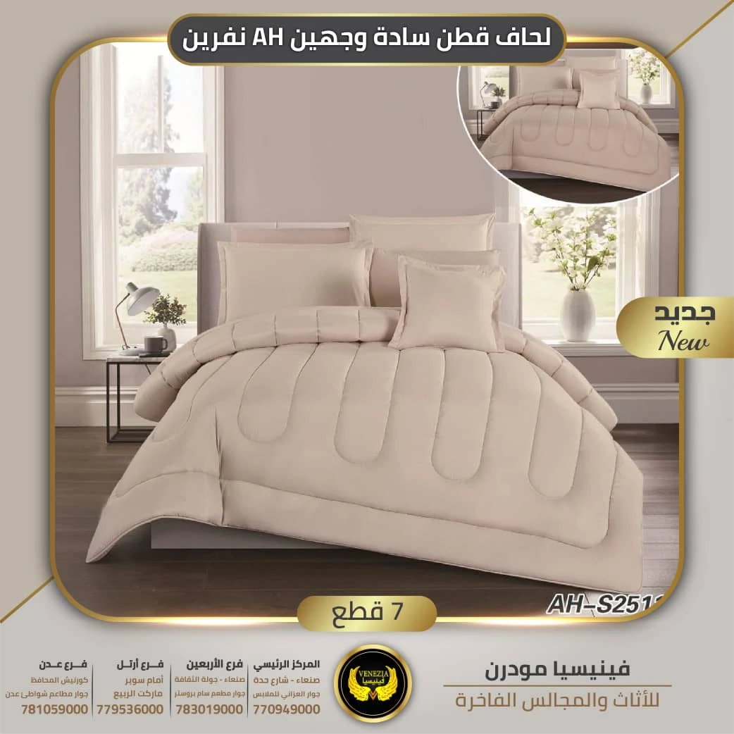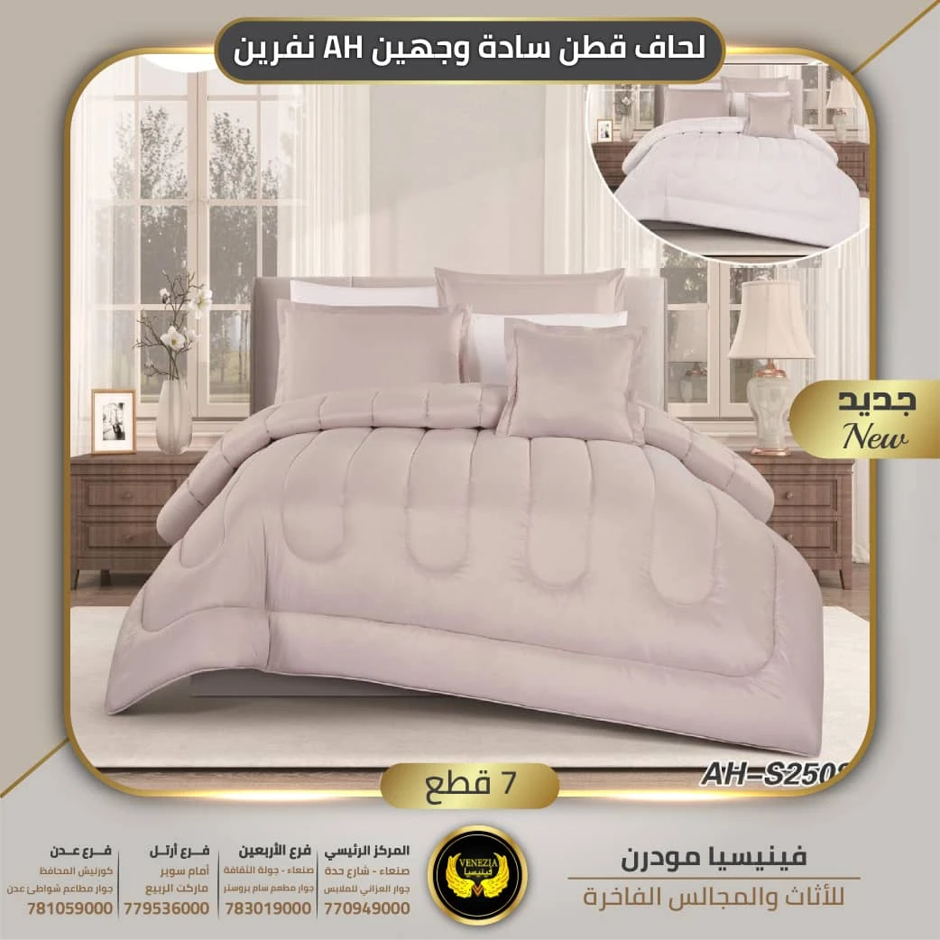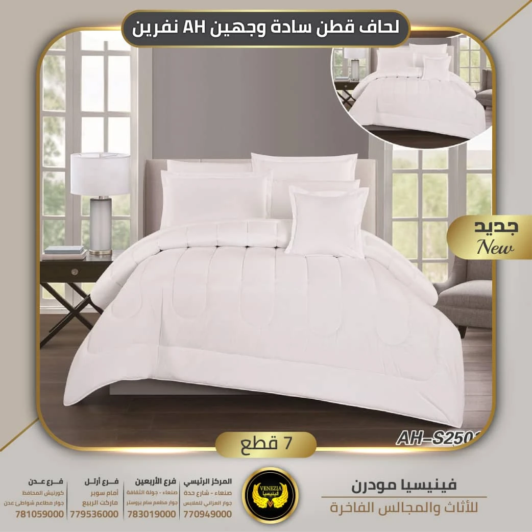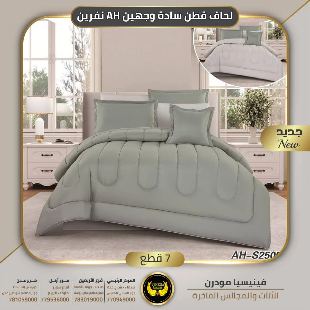 امنح غرفة نومك مظهرًا أنيقًا وبسيطًا مع لحافات قطن سادة وجهين AH – طقم نفرين 7 قطع من فينيسيا مودرن.