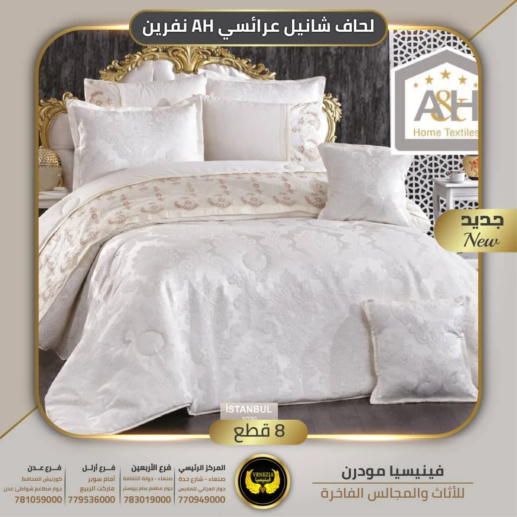 امنحي غرفة نومك لمسة من الفخامة مع لحافات شانيل نفرين 8 قطع AH المتوفرة لدى فينيسيا مودرن.