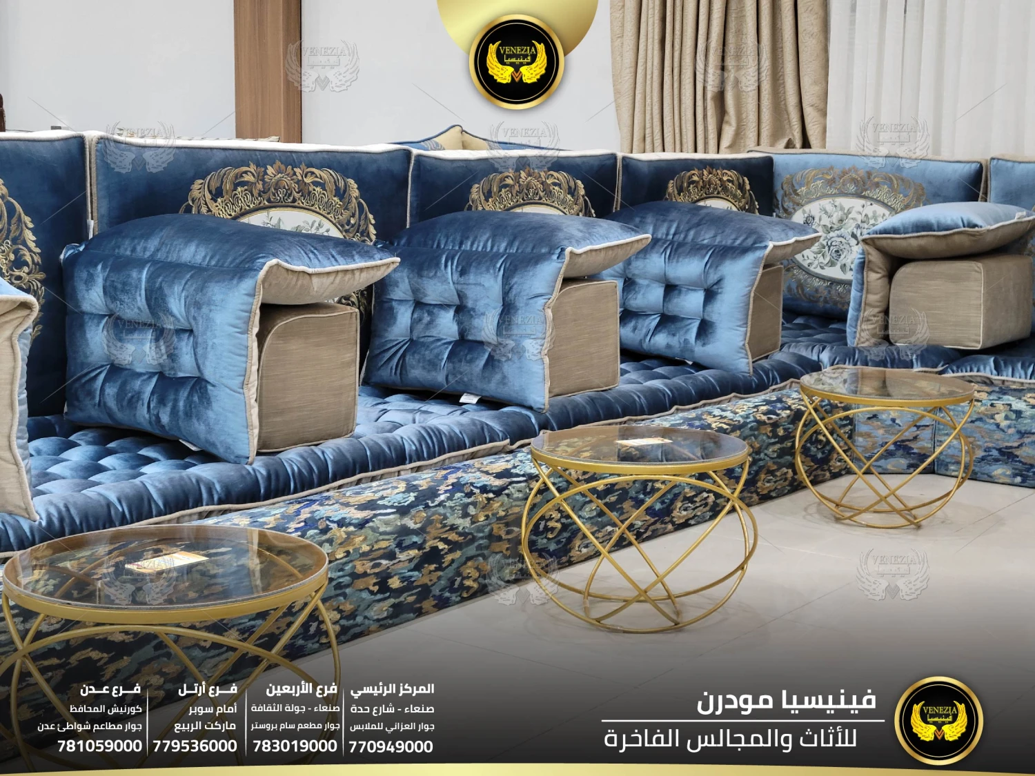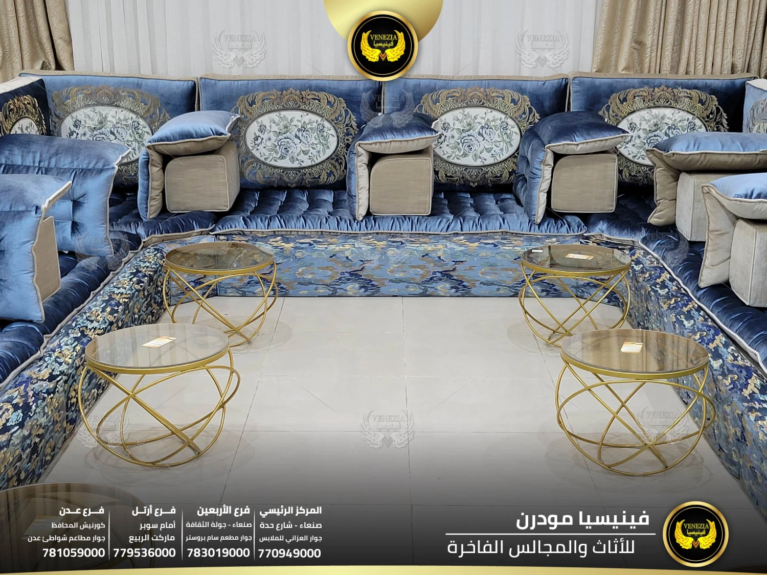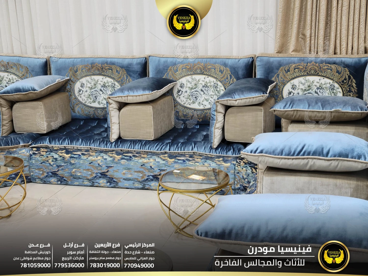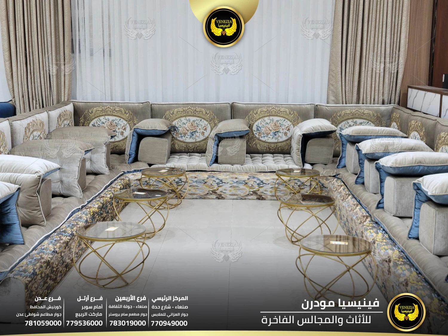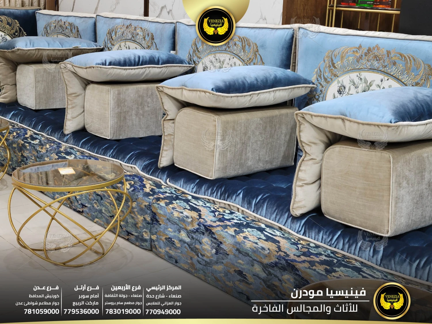 أفضل مجلس عربي فاخر في اليمن بتصميم ملكي وجودة عالية من فينيسيا مودرن. مجالس فخمة بصنعاء مع توصيل سريع لكل المحافظات. احجز الآن قبل نفاذ الكمية.