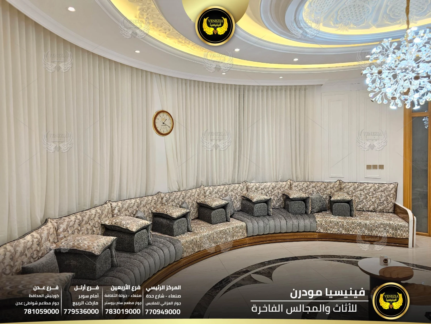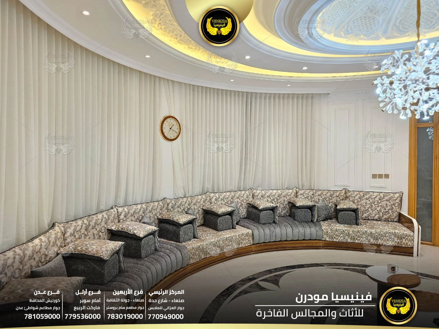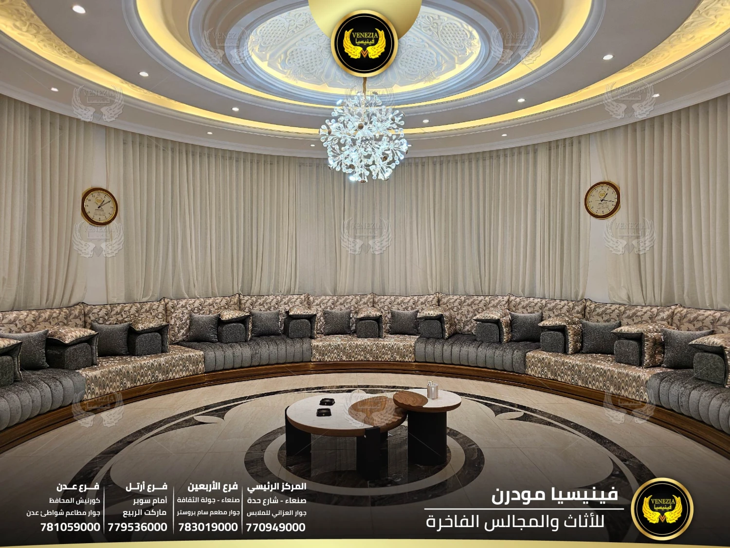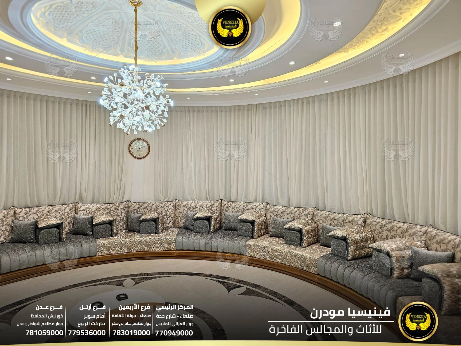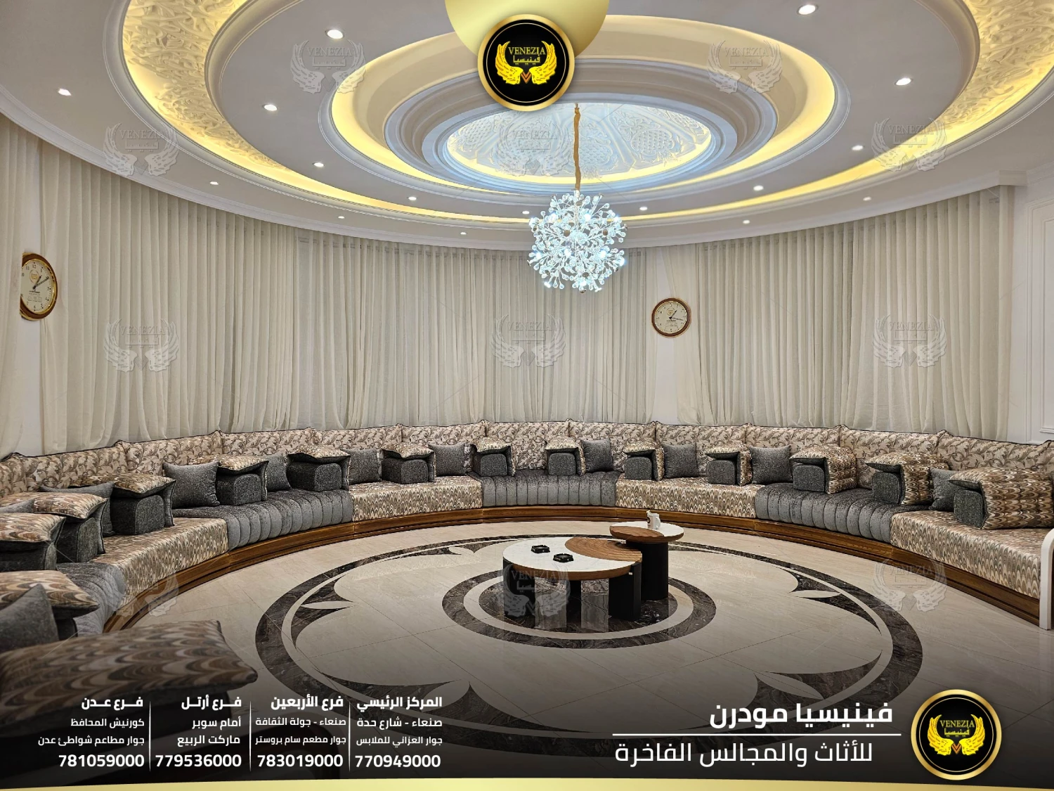 أفضل مجلس مغربي دائري فاخر في اليمن بتصميم أنيق وجودة عالية من فينيسيا مودرن. جلسات مغربية فخمة بصنعاء مع توصيل لجميع المحافظات بأسعار منافسة.