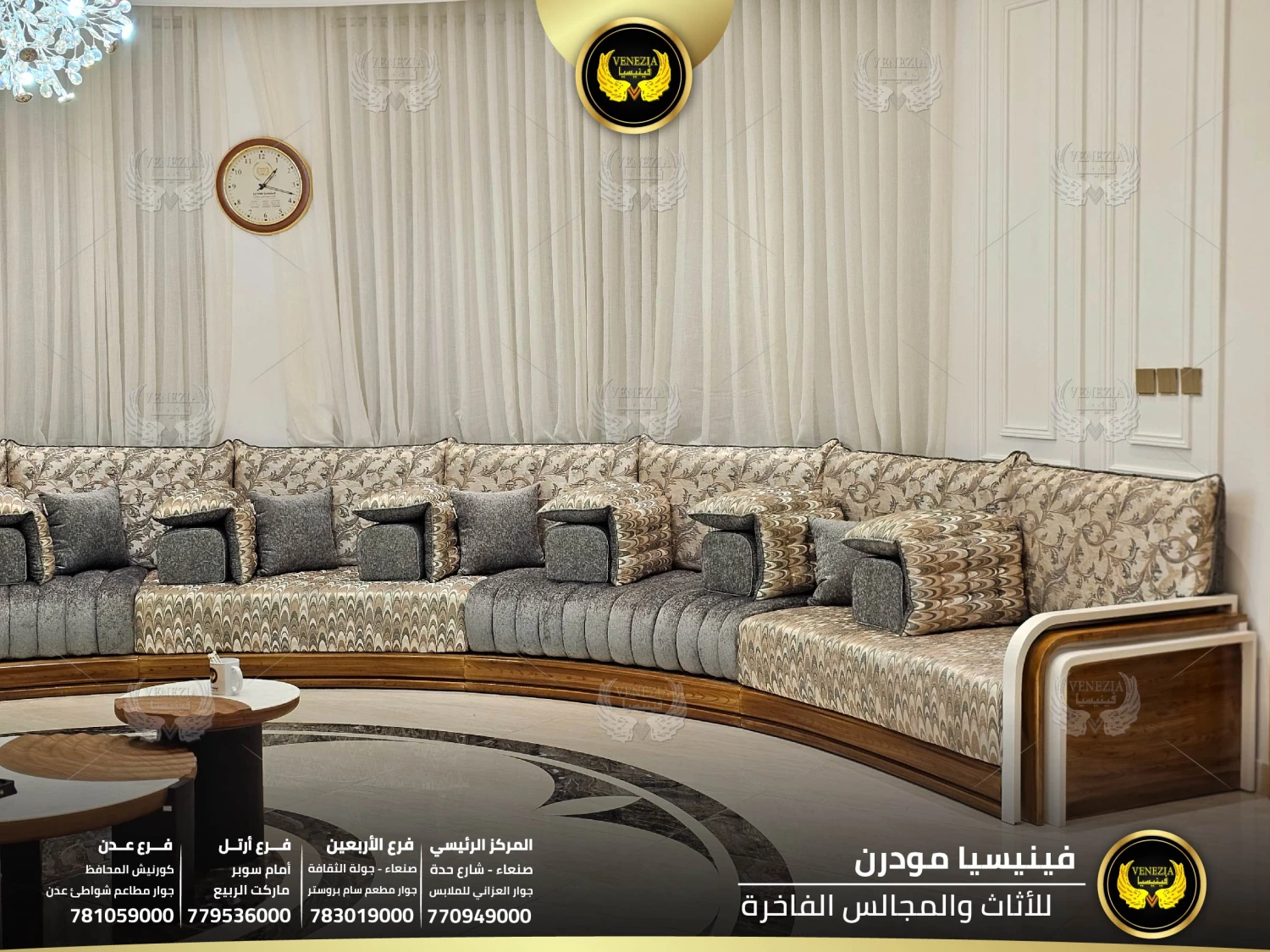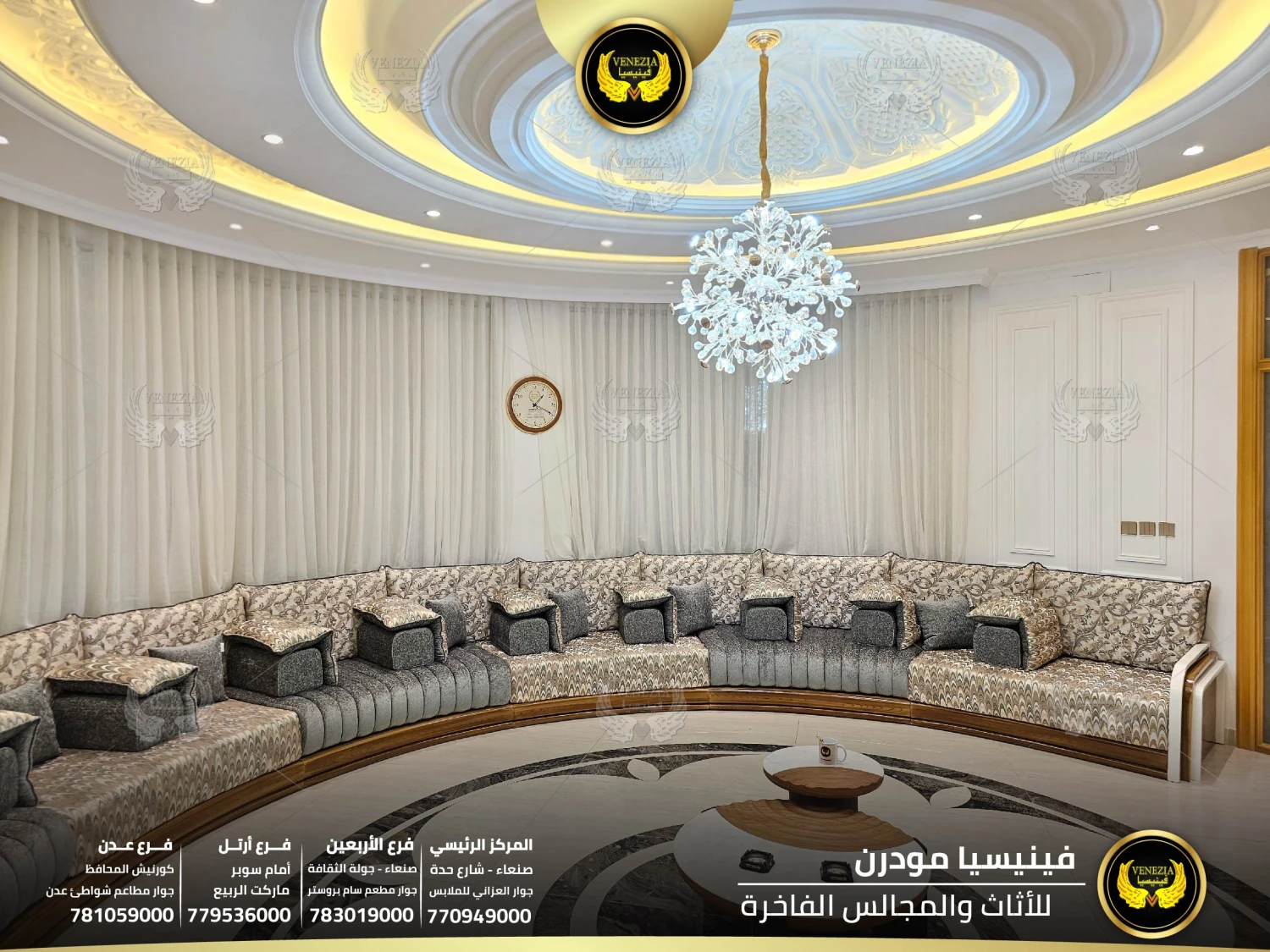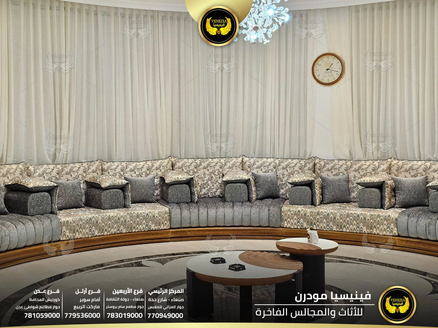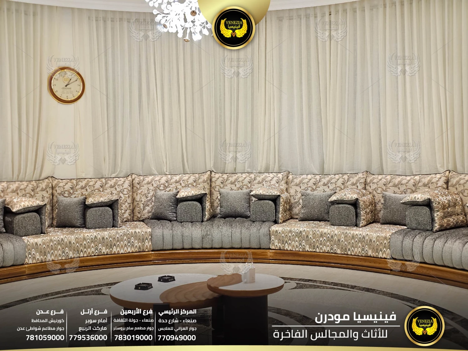 أفضل مجلس مغربي دائري فاخر في اليمن بتصميم أنيق وجودة عالية من فينيسيا مودرن. جلسات مغربية فخمة بصنعاء مع توصيل لجميع المحافظات بأسعار منافسة.
