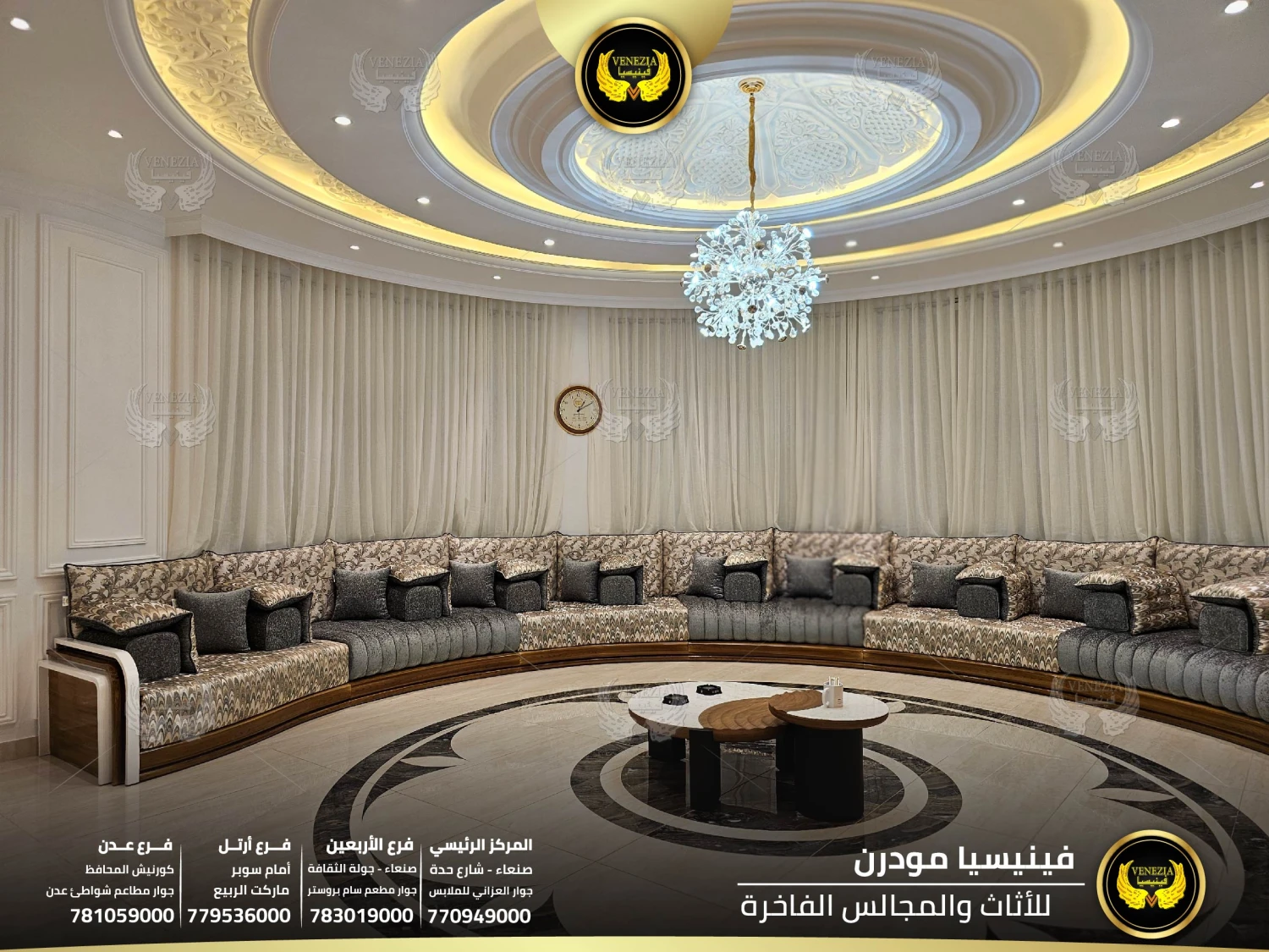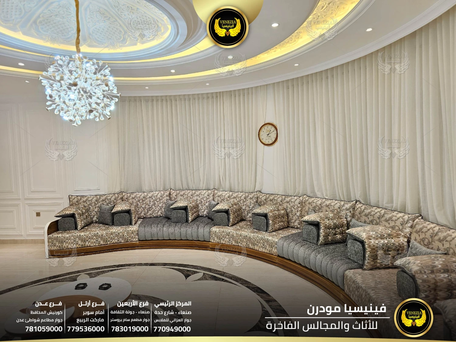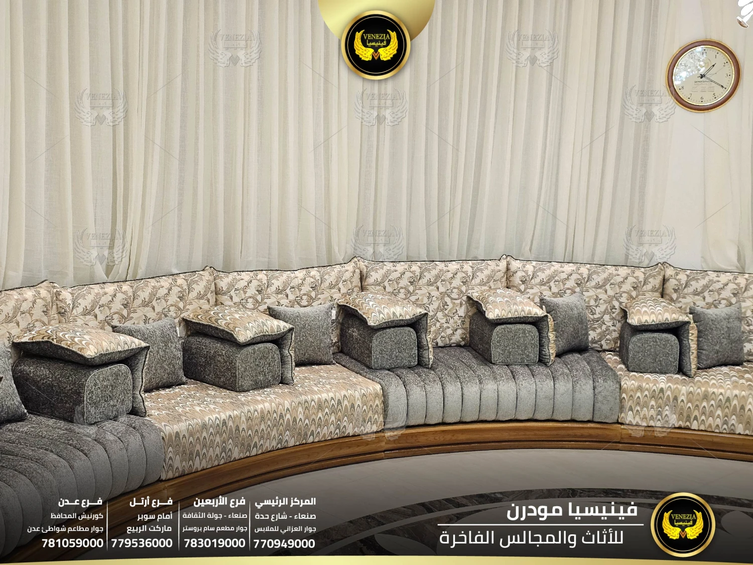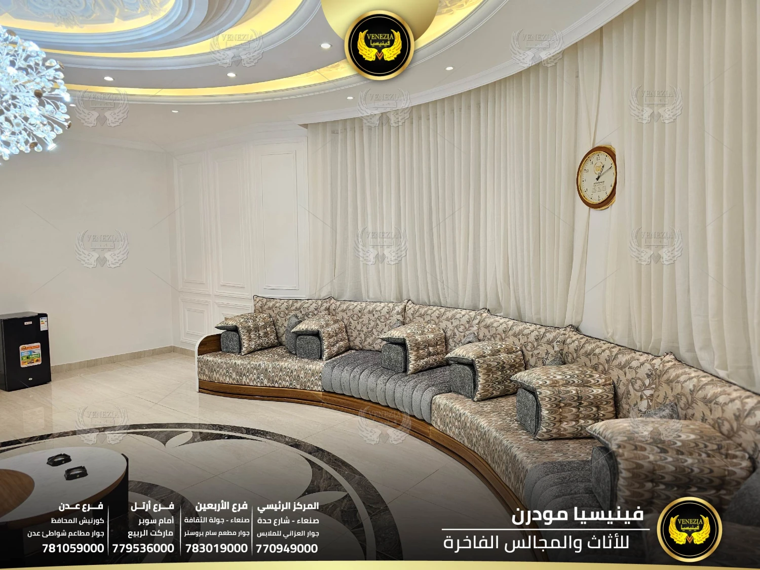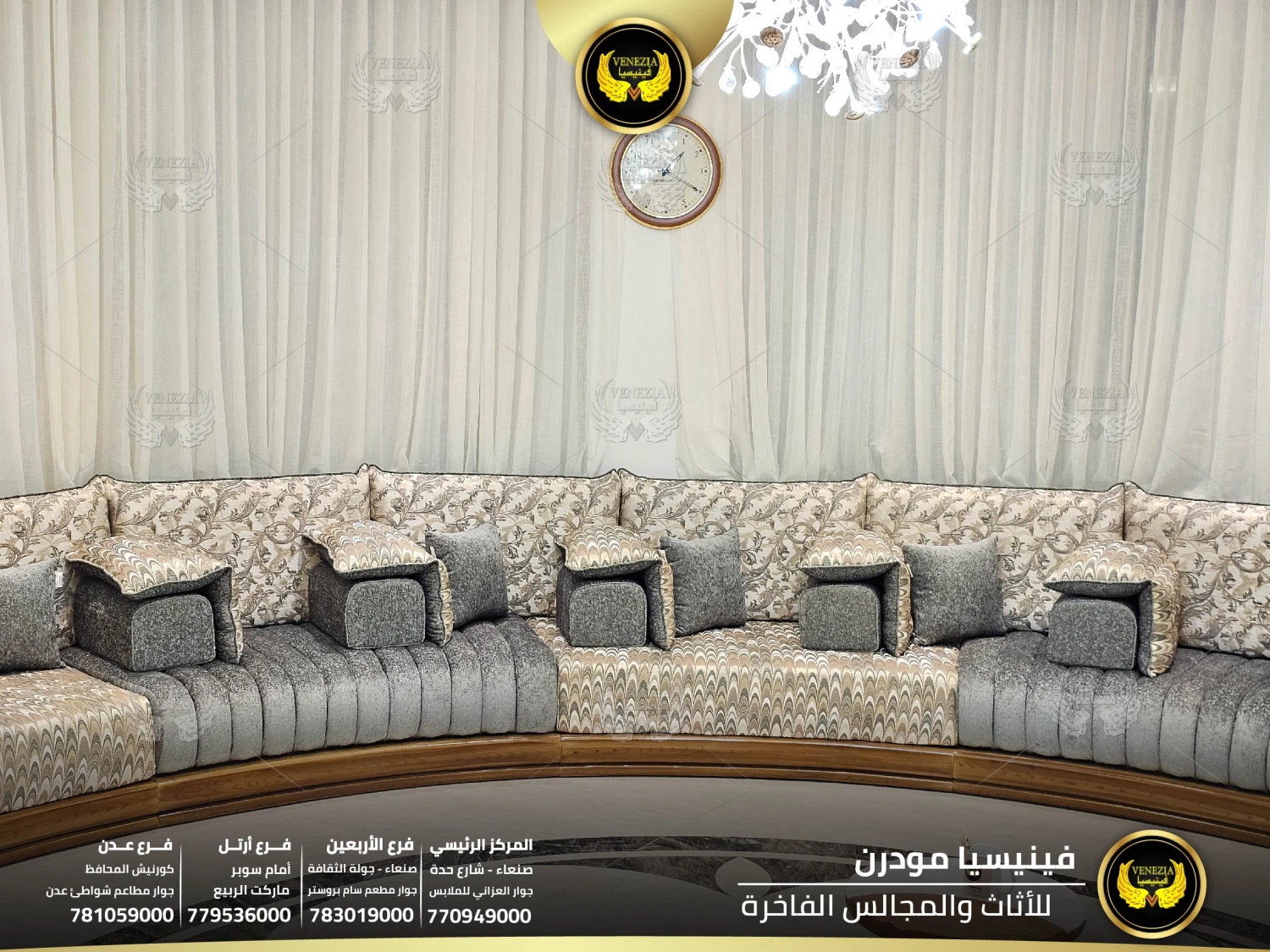 أفضل مجلس مغربي دائري فاخر في اليمن بتصميم أنيق وجودة عالية من فينيسيا مودرن. جلسات مغربية فخمة بصنعاء مع توصيل لجميع المحافظات بأسعار منافسة.