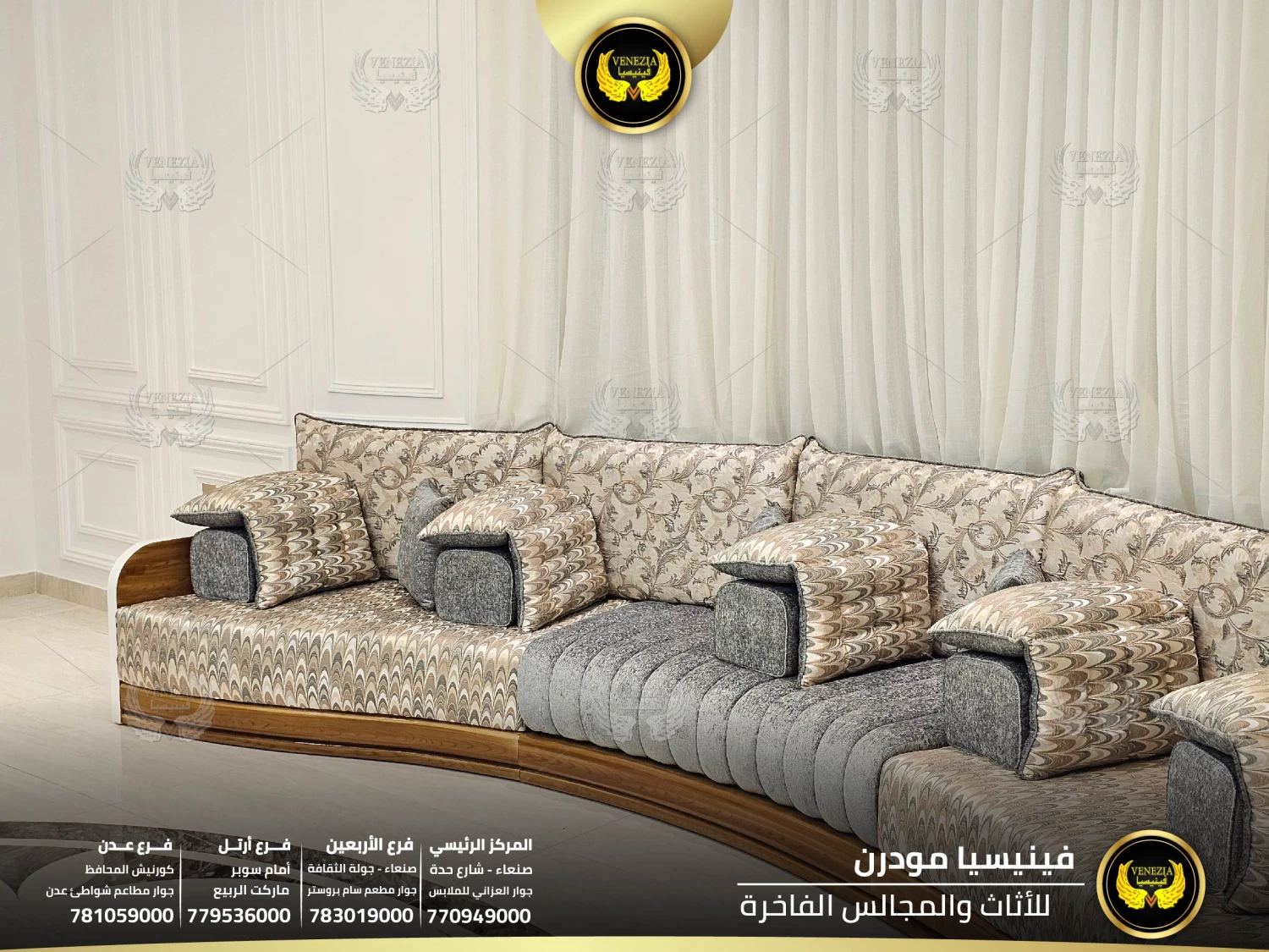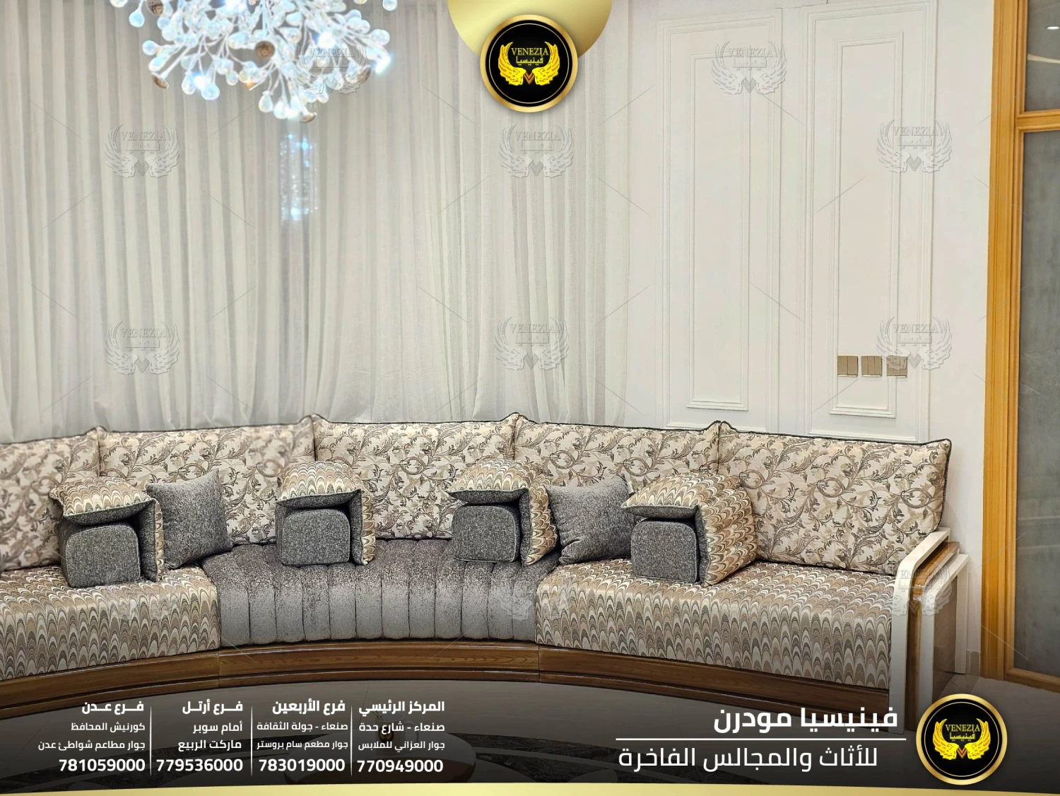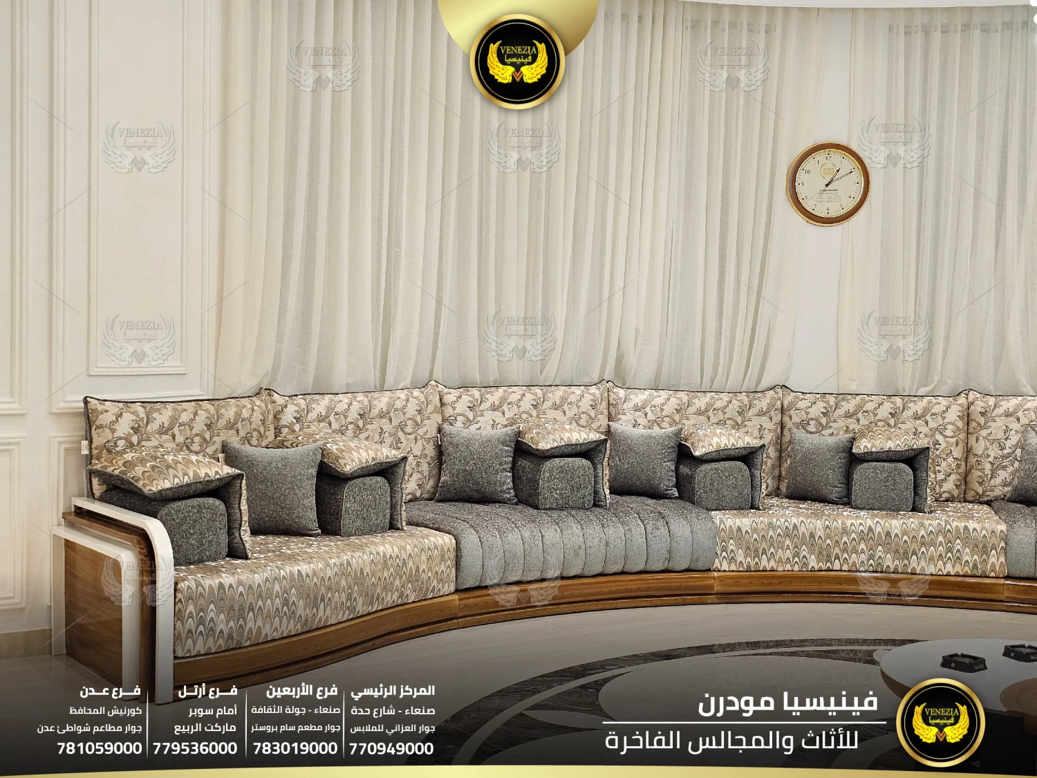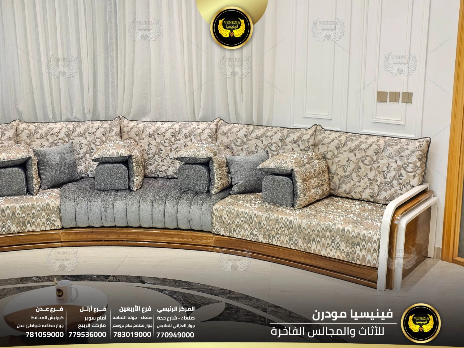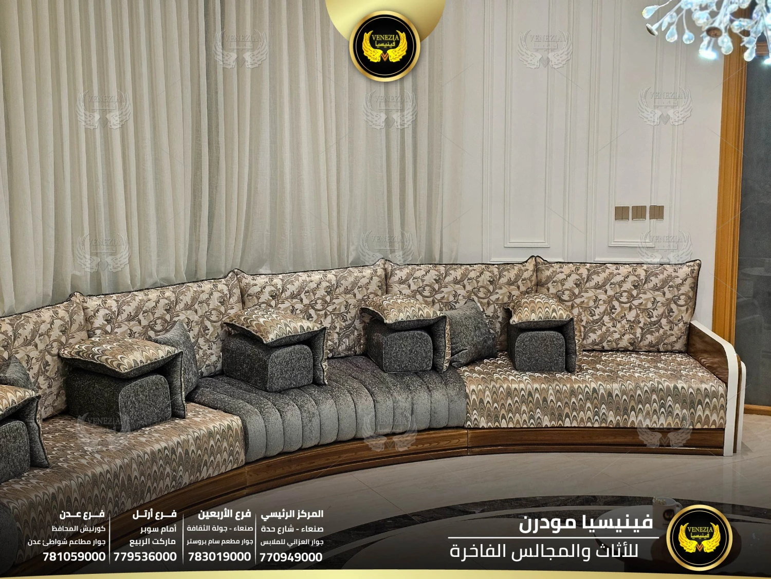 أفضل مجلس مغربي دائري فاخر في اليمن بتصميم أنيق وجودة عالية من فينيسيا مودرن. جلسات مغربية فخمة بصنعاء مع توصيل لجميع المحافظات بأسعار منافسة.