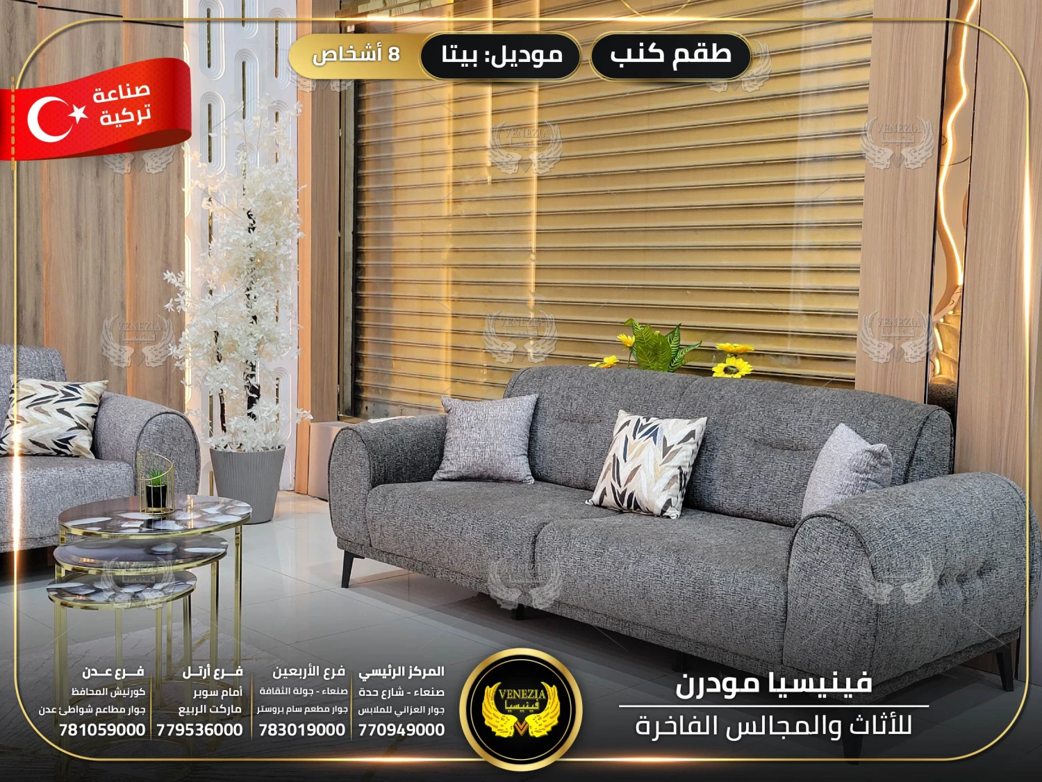 أضف لمسة فاخرة لمجلسك أو غرفة جلوسك مع الكنب التركي الفاخر المعروف بتصميمه الأنيق وجودته العالية. يجمع هذا الكنب بين الراحة والمتانة، ليمنح منزلك أسلوبًا راقيًا يتناسب مع ذوق العائلات في صنعاء وعدن وتعز والحديدة وإب وجميع محافظات اليمن.