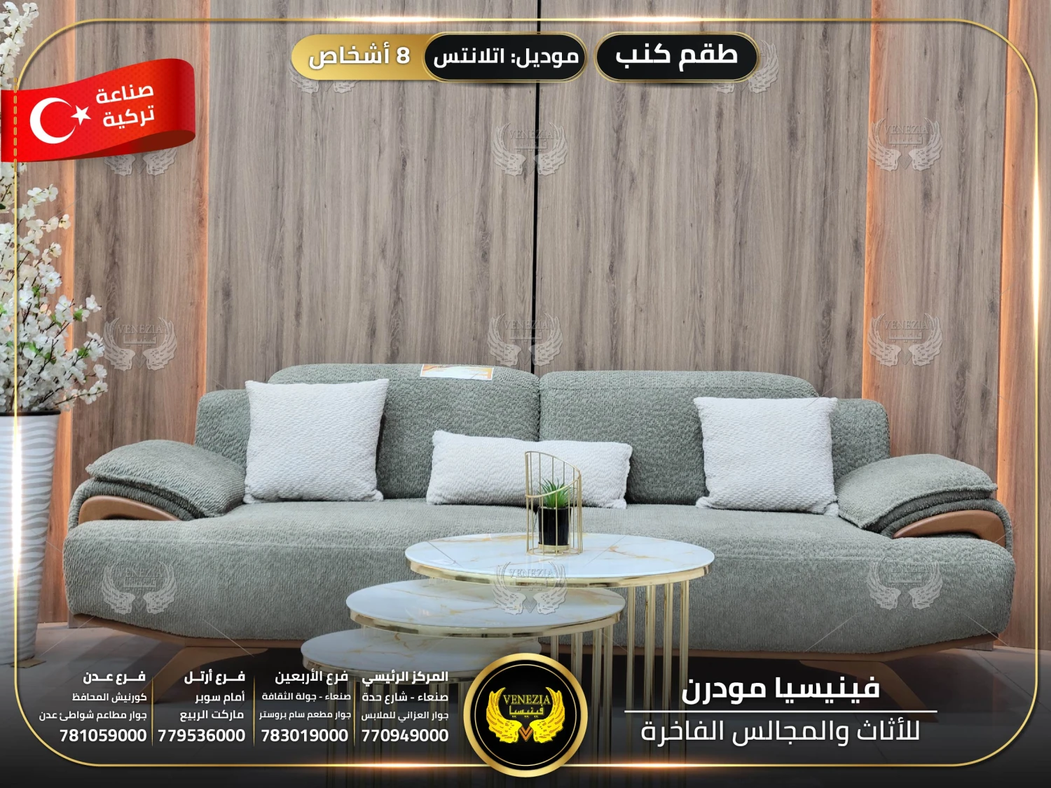أضف لمسة فاخرة لمجلسك أو غرفة جلوسك مع الكنب التركي الفاخر المعروف بتصميمه الأنيق وجودته العالية. يجمع هذا الكنب بين الراحة والمتانة، ليمنح منزلك أسلوبًا راقيًا يتناسب مع ذوق العائلات في صنعاء وعدن وتعز والحديدة وإب وجميع محافظات اليمن.